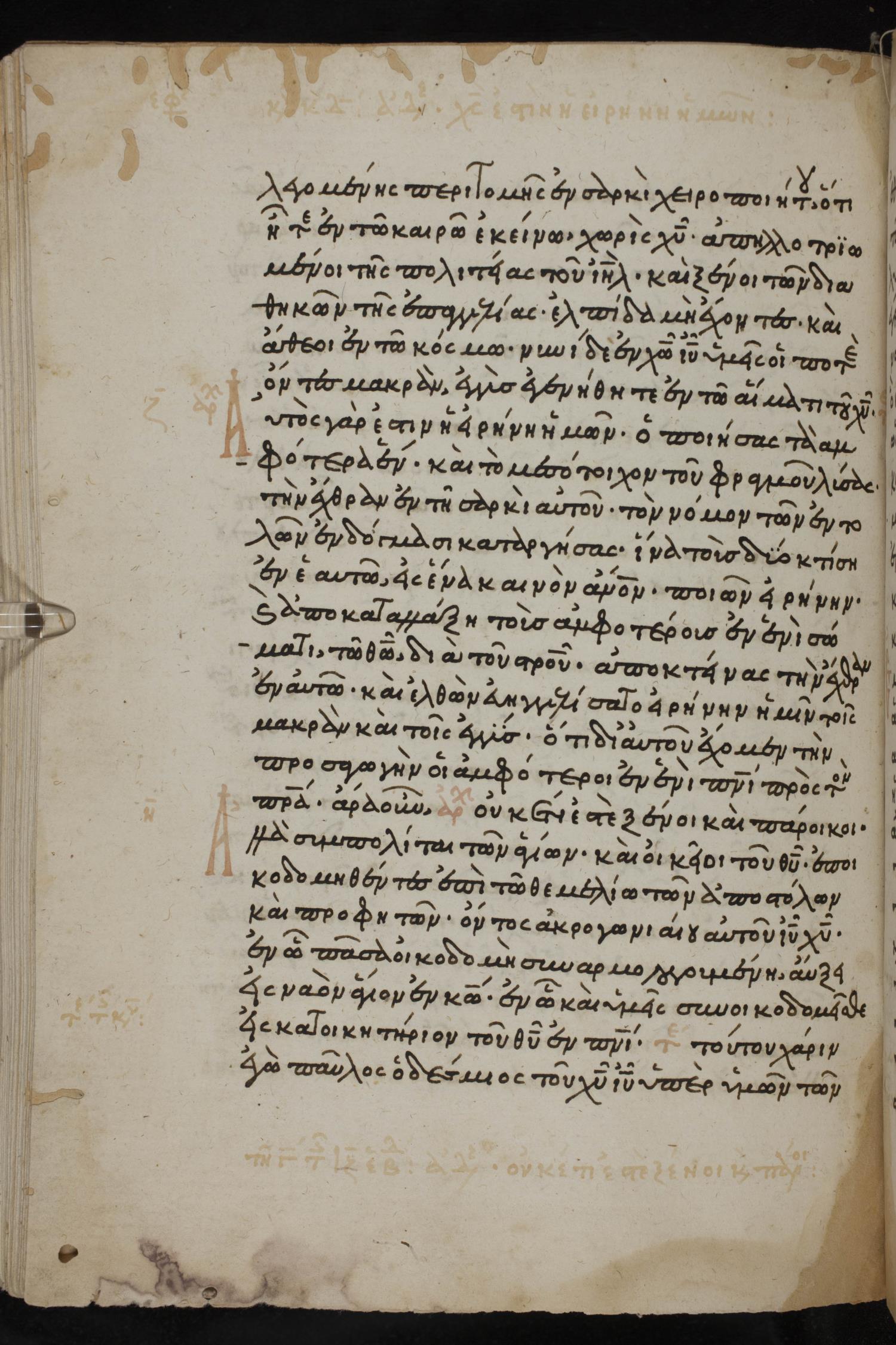 Thirteenth century minuscule of the Gospels, Apostolos, Paul, and Revelation on paper; 412 leaves, 1 column, 24-28 lines per column. Images were taken at the National Library of Greece in Athens.