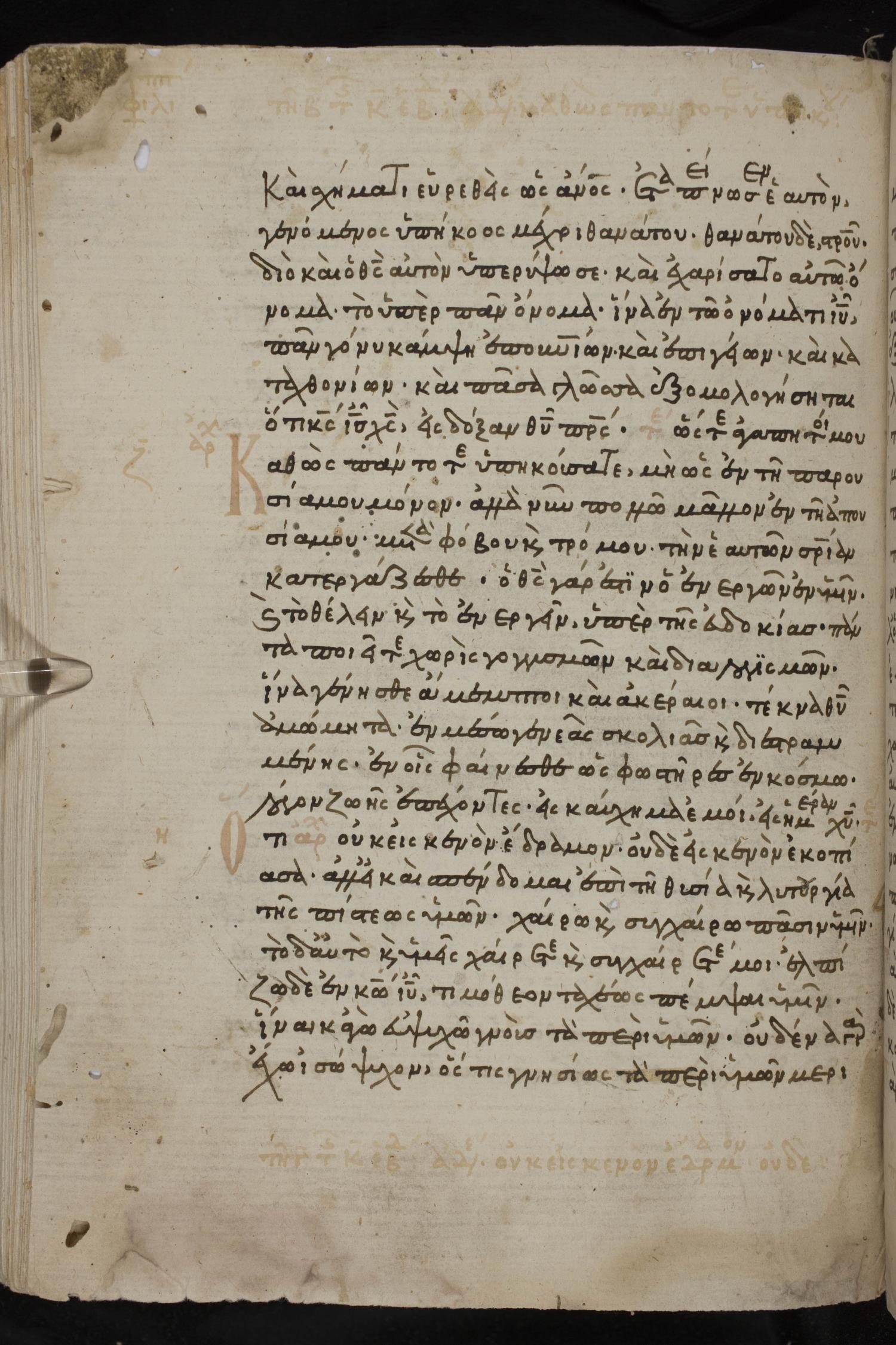Thirteenth century minuscule of the Gospels, Apostolos, Paul, and Revelation on paper; 412 leaves, 1 column, 24-28 lines per column. Images were taken at the National Library of Greece in Athens.