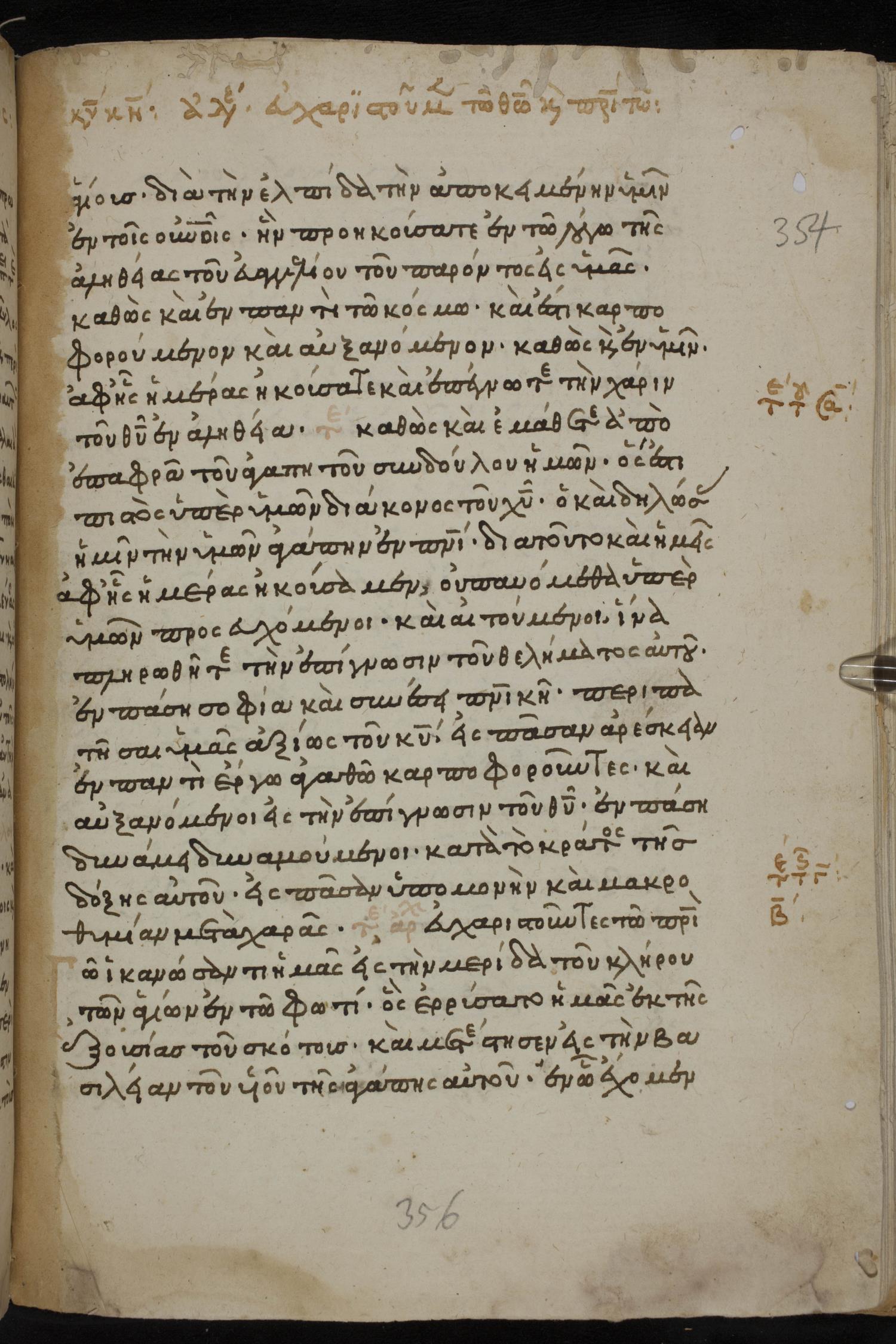 Thirteenth century minuscule of the Gospels, Apostolos, Paul, and Revelation on paper; 412 leaves, 1 column, 24-28 lines per column. Images were taken at the National Library of Greece in Athens.