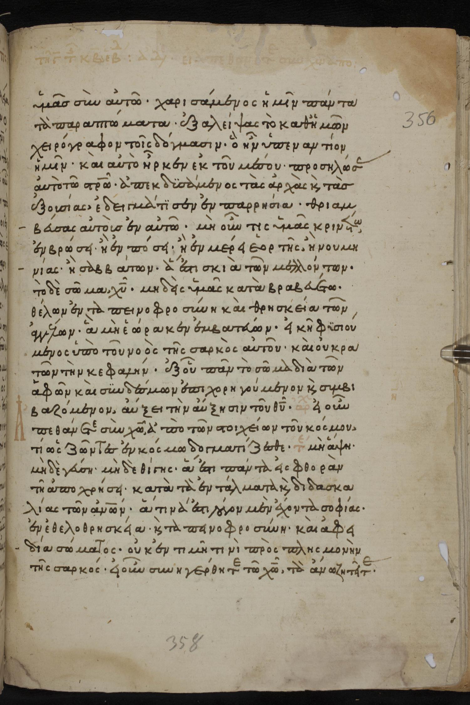 Thirteenth century minuscule of the Gospels, Apostolos, Paul, and Revelation on paper; 412 leaves, 1 column, 24-28 lines per column. Images were taken at the National Library of Greece in Athens.