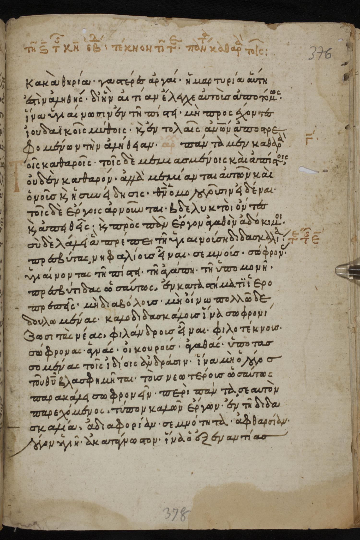 Thirteenth century minuscule of the Gospels, Apostolos, Paul, and Revelation on paper; 412 leaves, 1 column, 24-28 lines per column. Images were taken at the National Library of Greece in Athens.