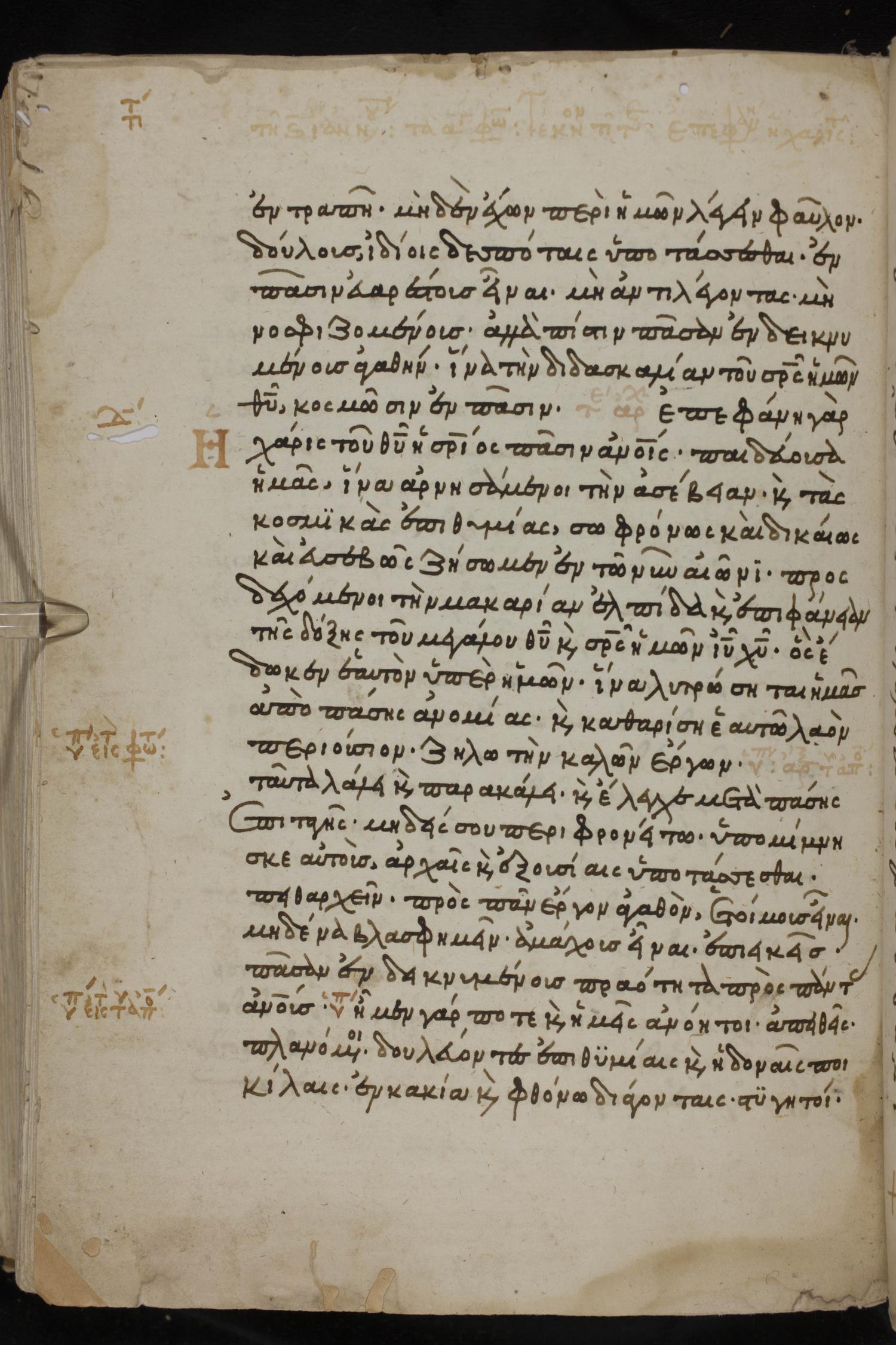 Ὑπομίμνησκε αὐτοὺς ἀρχαῖς ἐξουσίαις ὑποτάσσεσθαι πειθαρχεῖν, πρὸς πᾶν ἔργον ἀγαθὸν ἑτοίμους εἶναι,