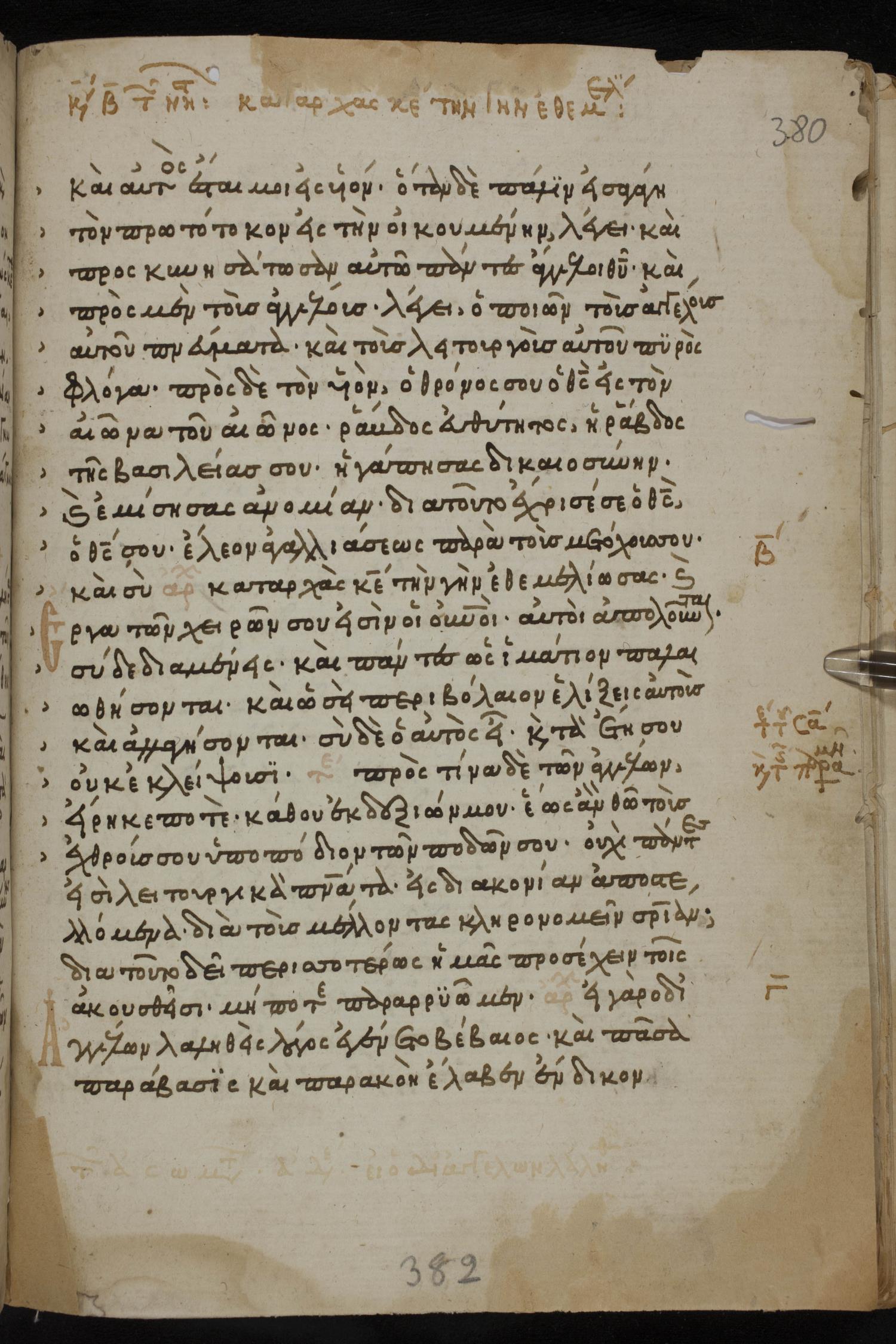 Thirteenth century minuscule of the Gospels, Apostolos, Paul, and Revelation on paper; 412 leaves, 1 column, 24-28 lines per column. Images were taken at the National Library of Greece in Athens.