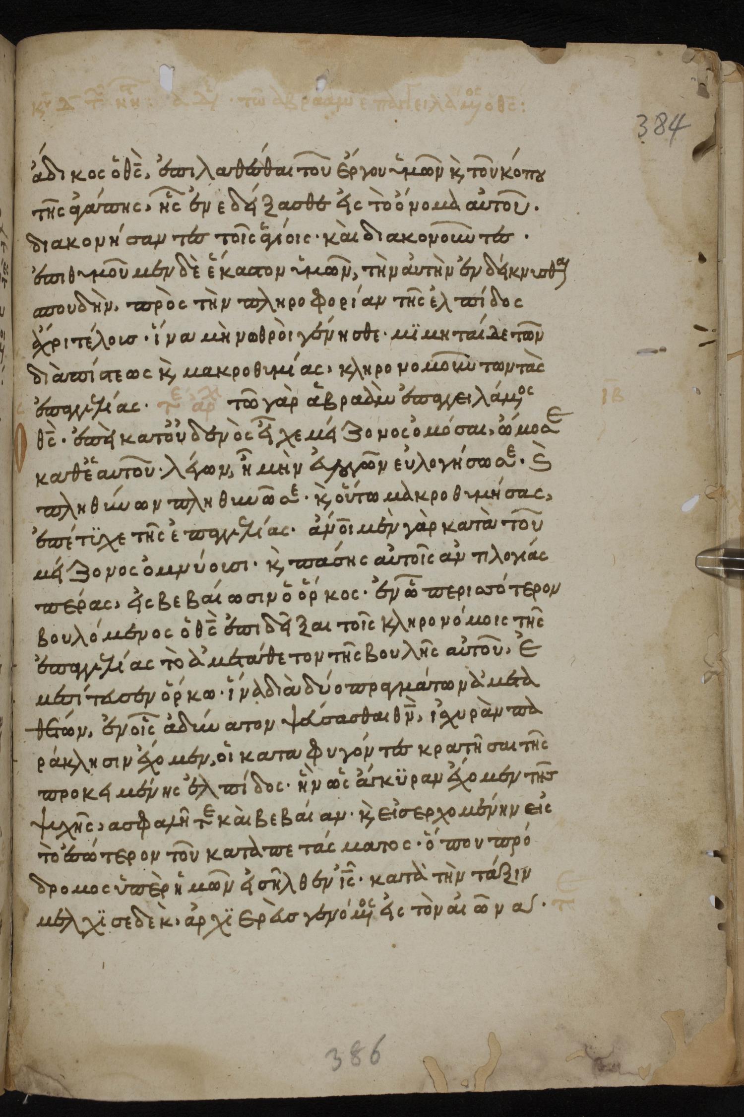 Thirteenth century minuscule of the Gospels, Apostolos, Paul, and Revelation on paper; 412 leaves, 1 column, 24-28 lines per column. Images were taken at the National Library of Greece in Athens.