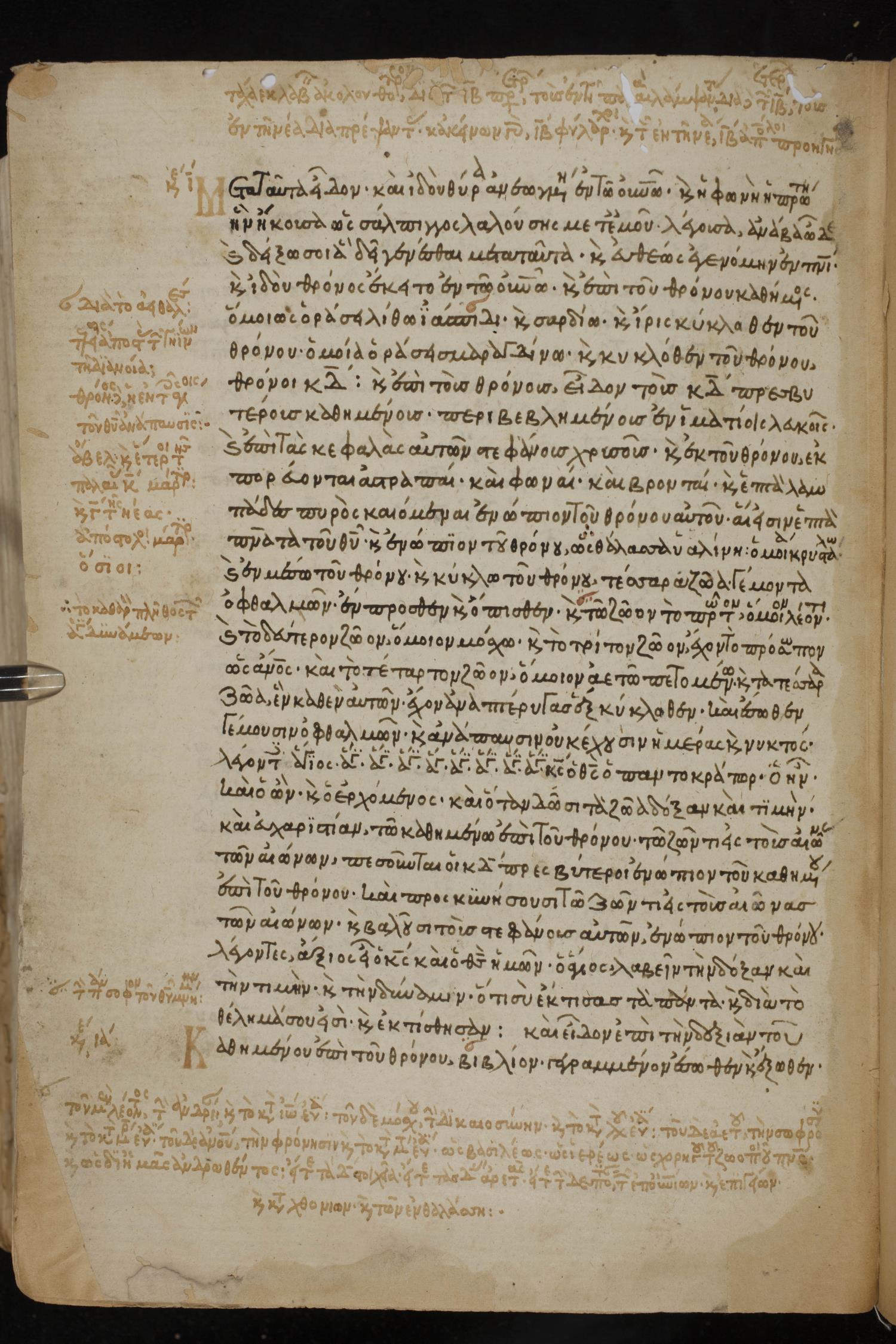 Thirteenth century minuscule of the Gospels, Apostolos, Paul, and Revelation on paper; 412 leaves, 1 column, 24-28 lines per column. Images were taken at the National Library of Greece in Athens.