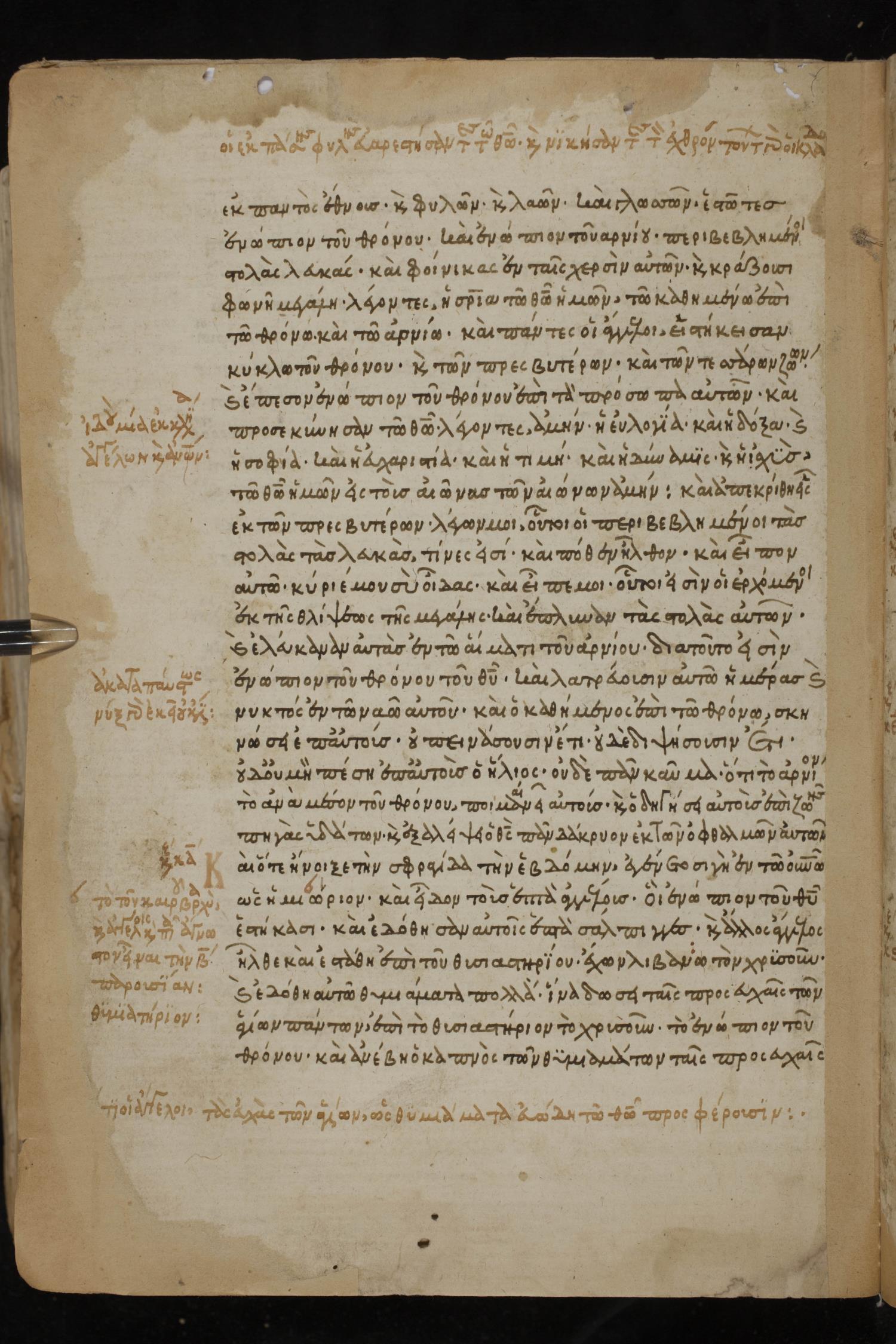 Thirteenth century minuscule of the Gospels, Apostolos, Paul, and Revelation on paper; 412 leaves, 1 column, 24-28 lines per column. Images were taken at the National Library of Greece in Athens.