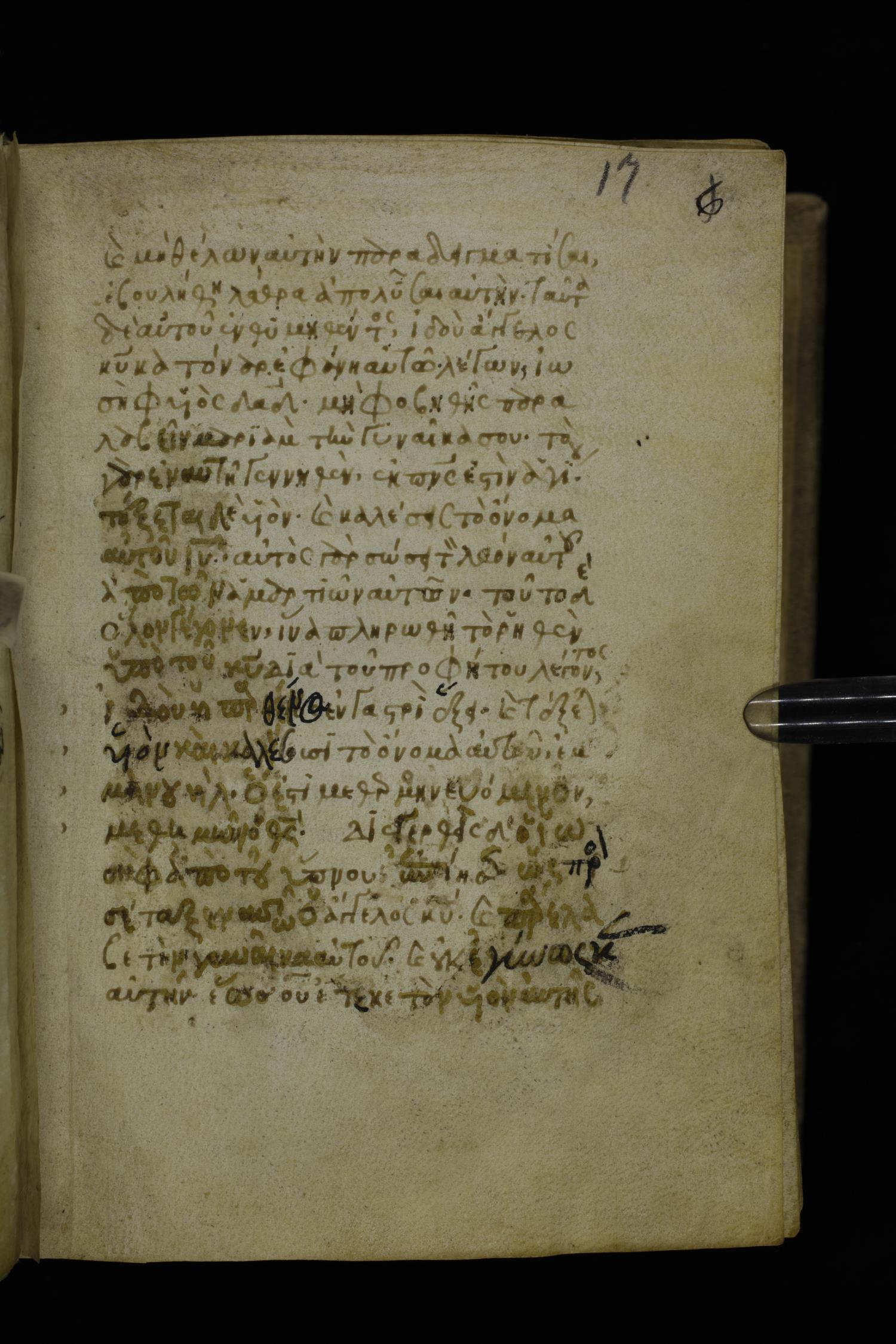 Fourteenth century minuscule of the Gospels on parchment; 302 leaves, 1 column, 19-21 lines per column. Images were taken at the National Library of Greece in Athens.