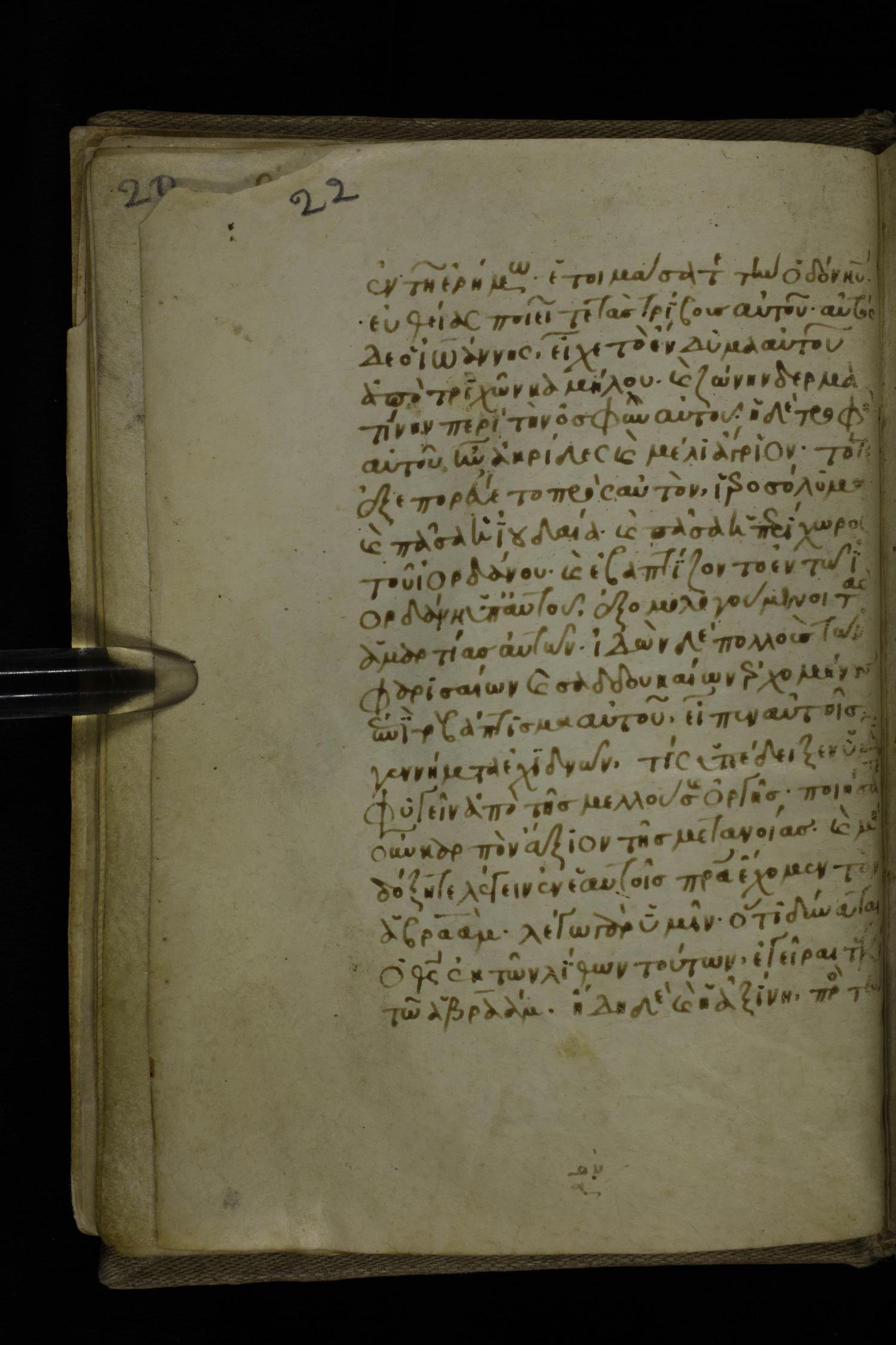 Fourteenth century minuscule of the Gospels on parchment; 302 leaves, 1 column, 19-21 lines per column. Images were taken at the National Library of Greece in Athens.