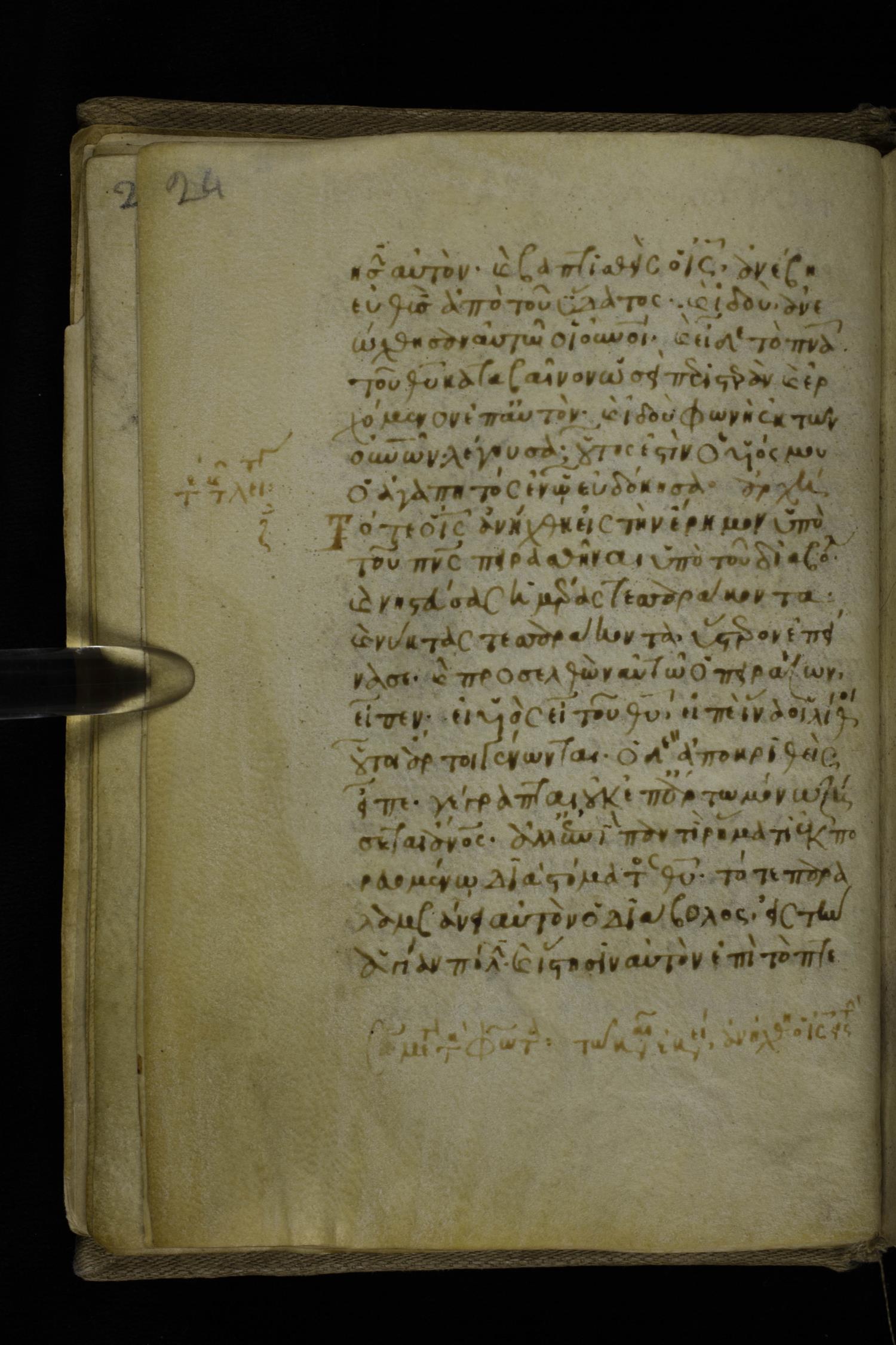 Fourteenth century minuscule of the Gospels on parchment; 302 leaves, 1 column, 19-21 lines per column. Images were taken at the National Library of Greece in Athens.