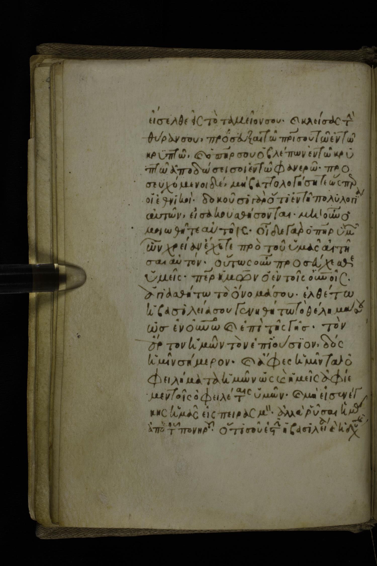 Fourteenth century minuscule of the Gospels on parchment; 302 leaves, 1 column, 19-21 lines per column. Images were taken at the National Library of Greece in Athens.