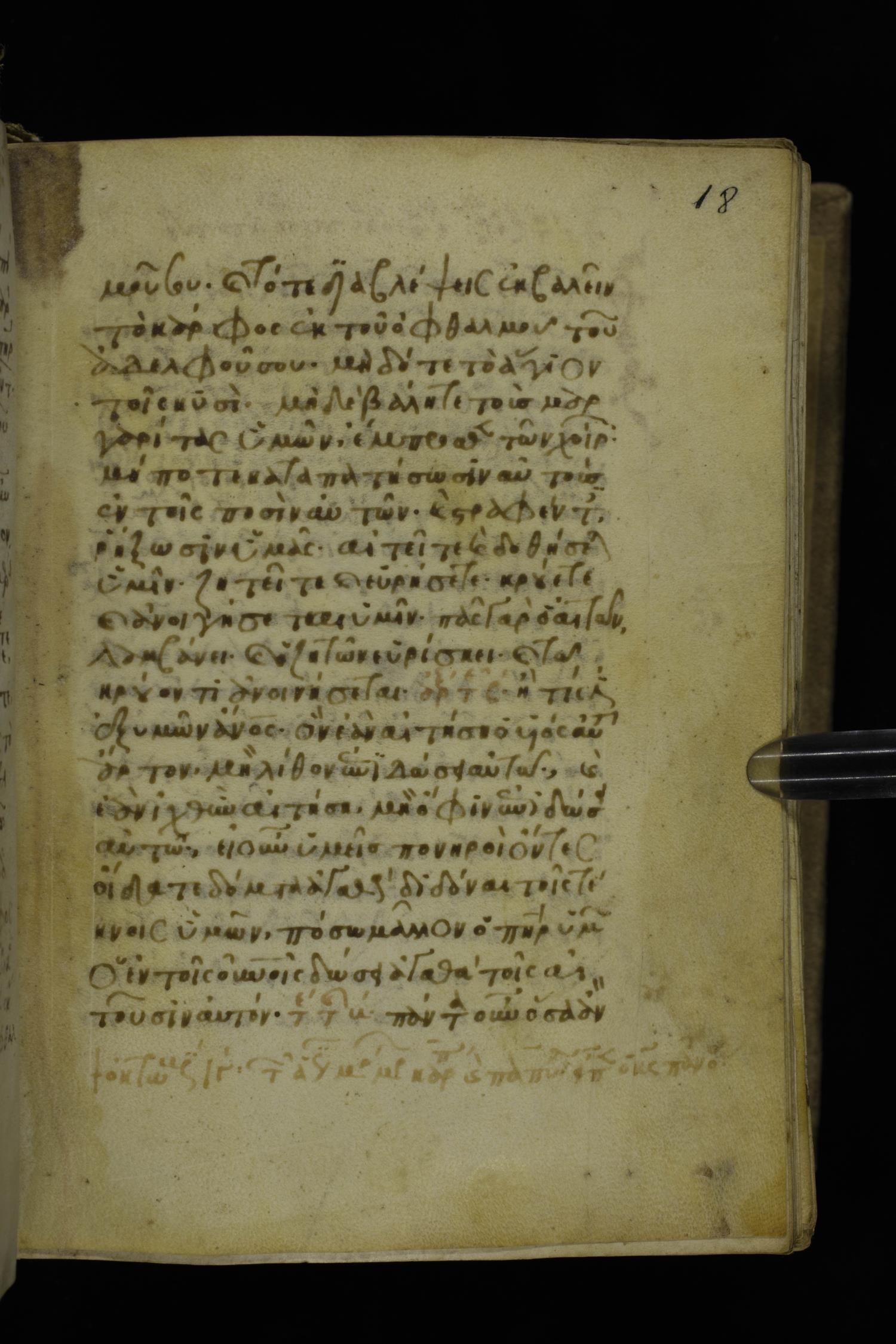 Fourteenth century minuscule of the Gospels on parchment; 302 leaves, 1 column, 19-21 lines per column. Images were taken at the National Library of Greece in Athens.