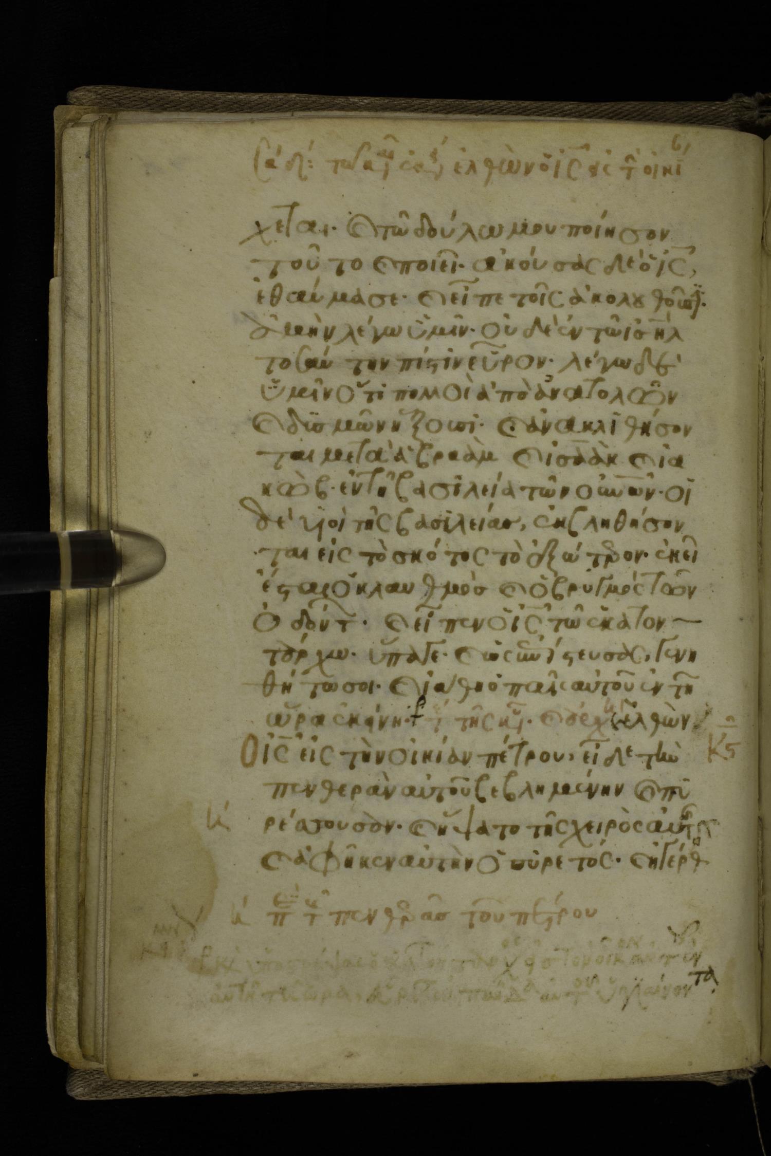 Fourteenth century minuscule of the Gospels on parchment; 302 leaves, 1 column, 19-21 lines per column. Images were taken at the National Library of Greece in Athens.