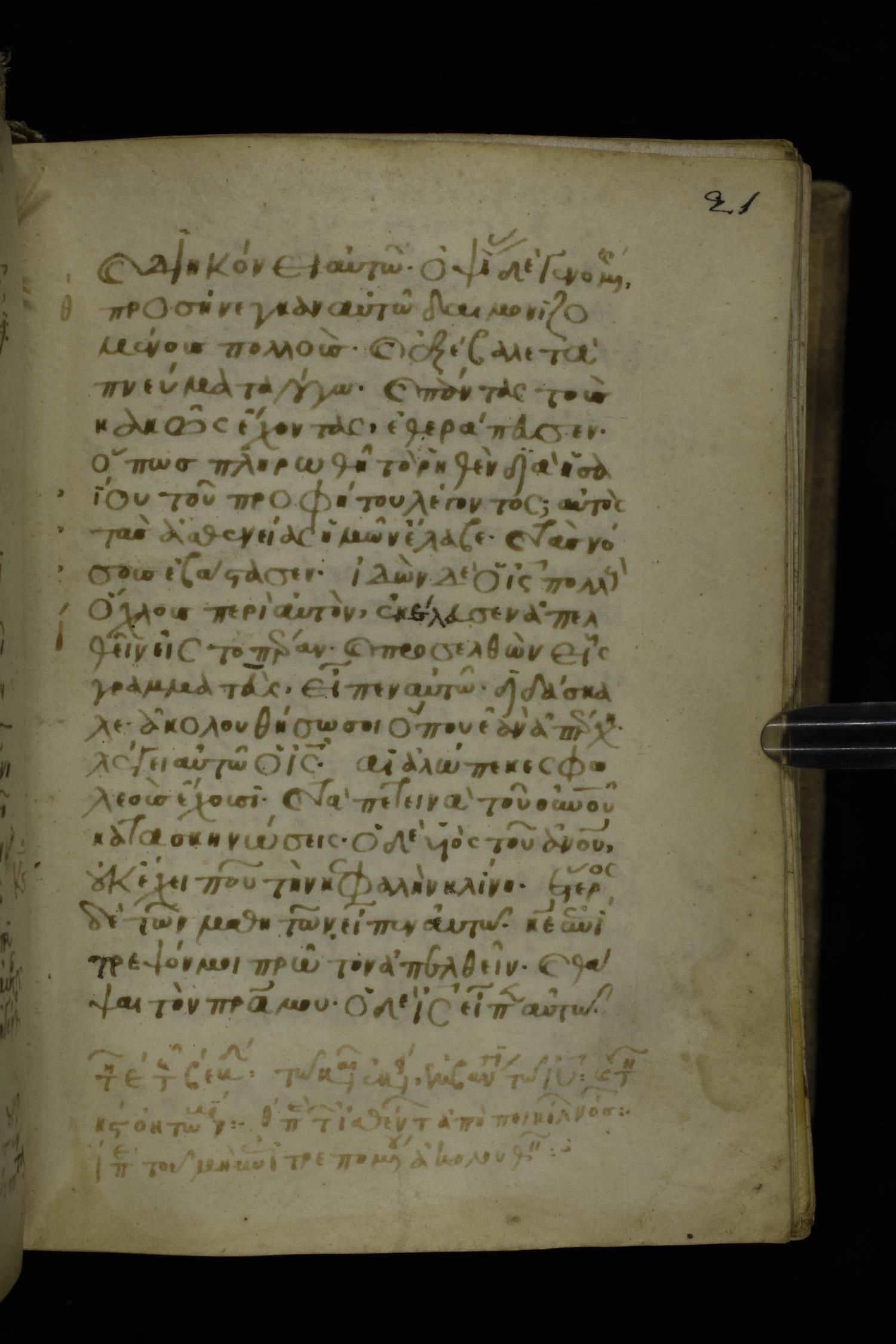 Fourteenth century minuscule of the Gospels on parchment; 302 leaves, 1 column, 19-21 lines per column. Images were taken at the National Library of Greece in Athens.