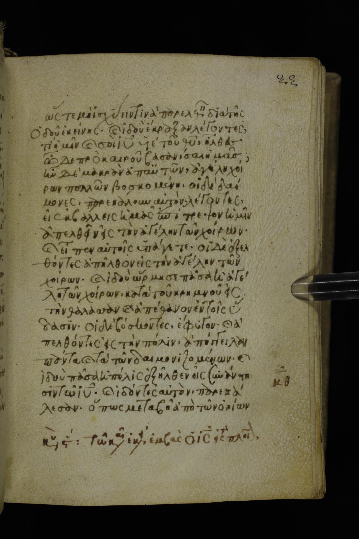 Fourteenth century minuscule of the Gospels on parchment; 302 leaves, 1 column, 19-21 lines per column. Images were taken at the National Library of Greece in Athens.
