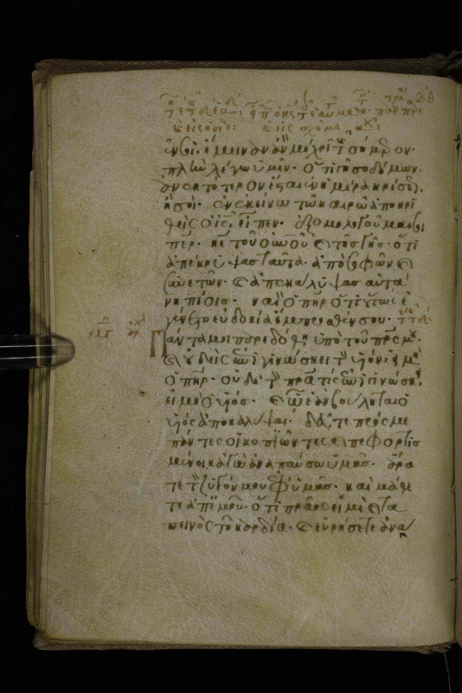 Fourteenth century minuscule of the Gospels on parchment; 302 leaves, 1 column, 19-21 lines per column. Images were taken at the National Library of Greece in Athens.