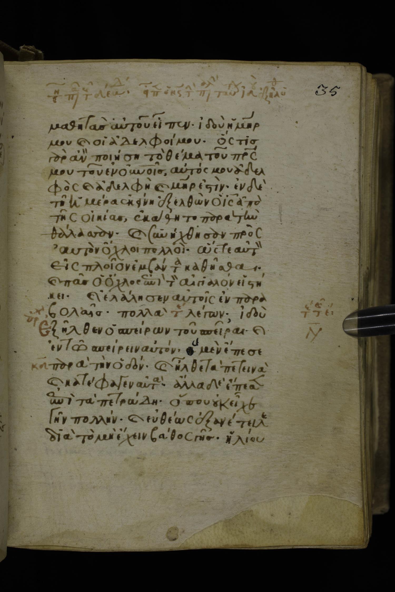 Fourteenth century minuscule of the Gospels on parchment; 302 leaves, 1 column, 19-21 lines per column. Images were taken at the National Library of Greece in Athens.