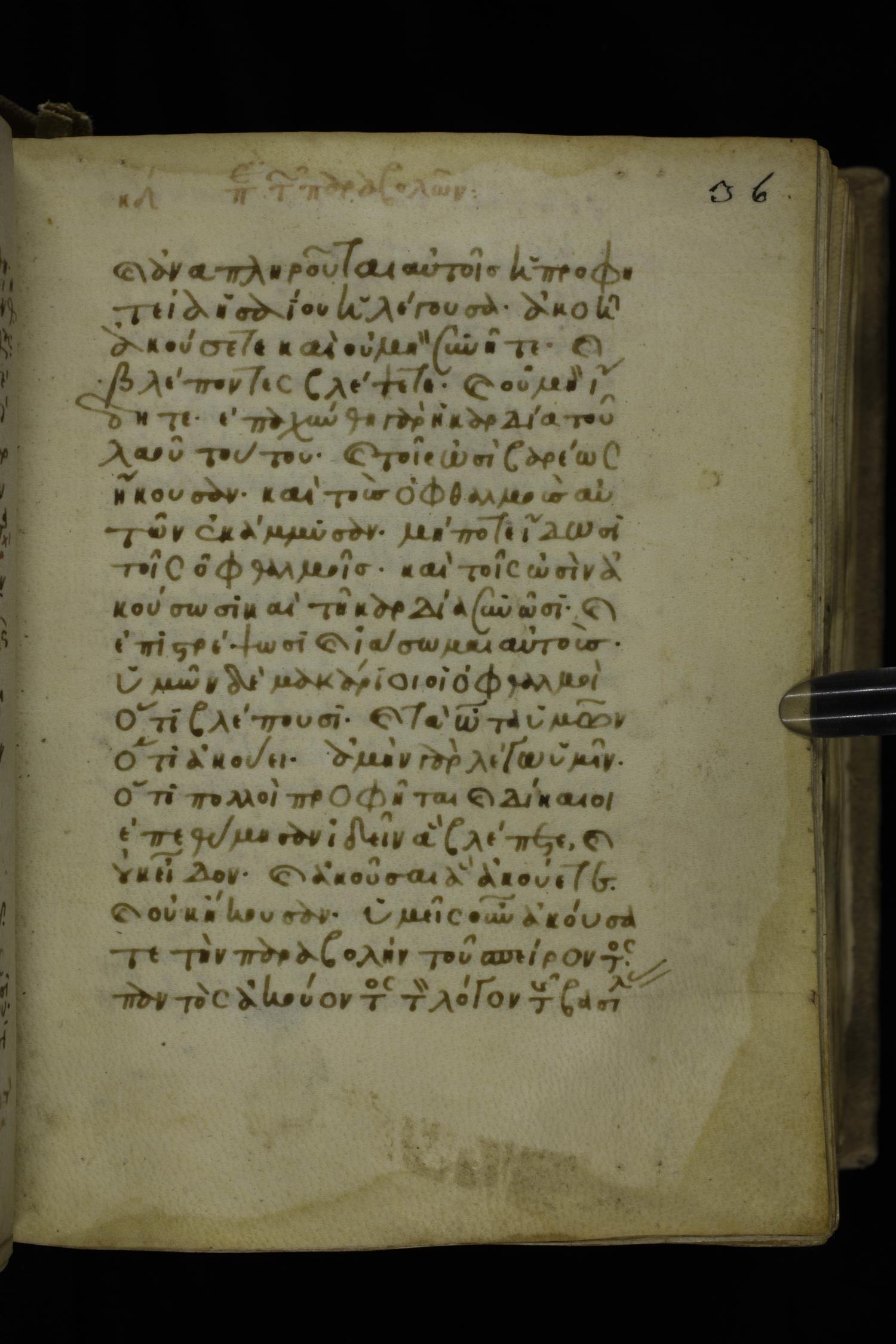 Fourteenth century minuscule of the Gospels on parchment; 302 leaves, 1 column, 19-21 lines per column. Images were taken at the National Library of Greece in Athens.