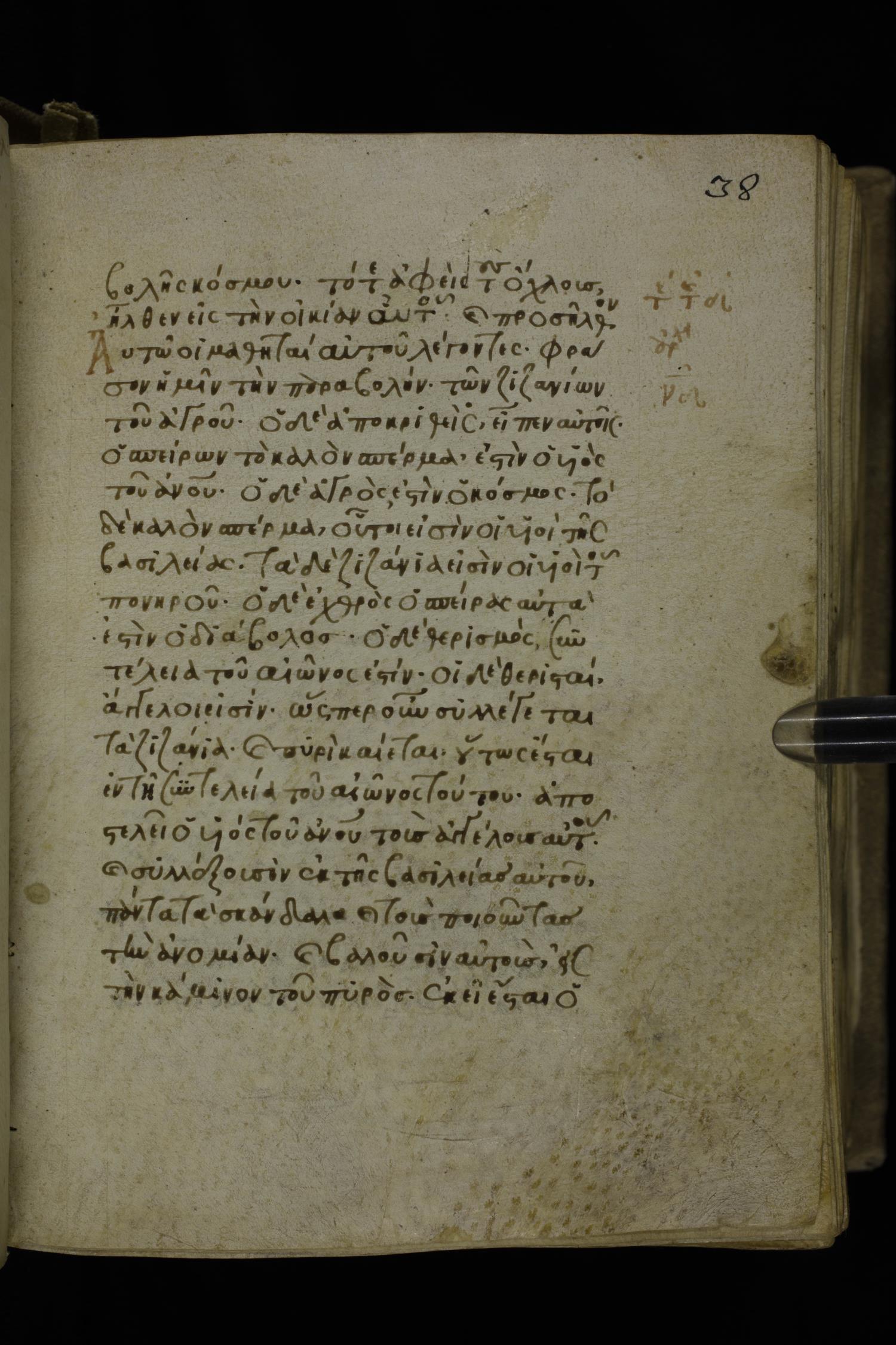 Fourteenth century minuscule of the Gospels on parchment; 302 leaves, 1 column, 19-21 lines per column. Images were taken at the National Library of Greece in Athens.