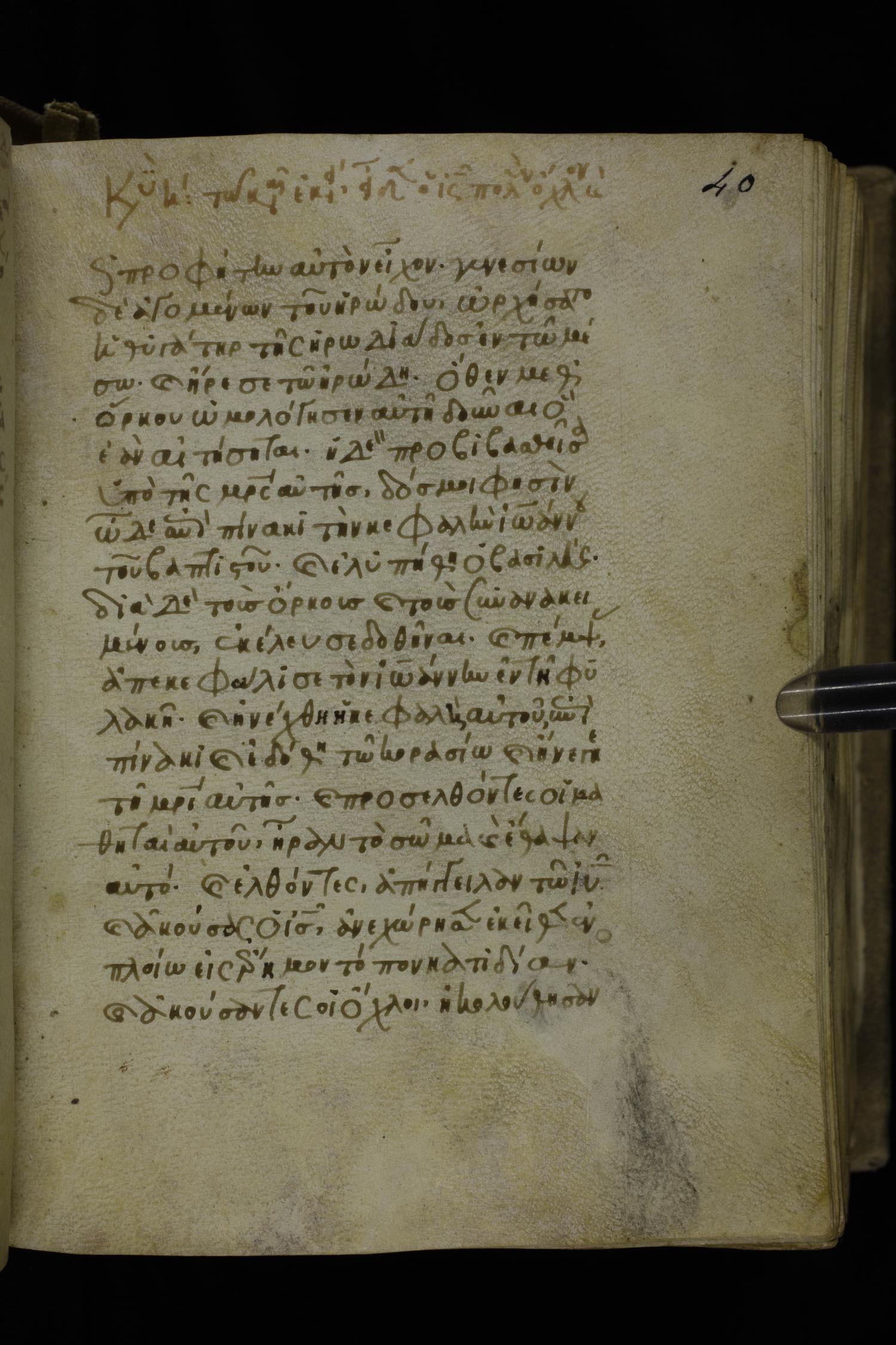 Fourteenth century minuscule of the Gospels on parchment; 302 leaves, 1 column, 19-21 lines per column. Images were taken at the National Library of Greece in Athens.