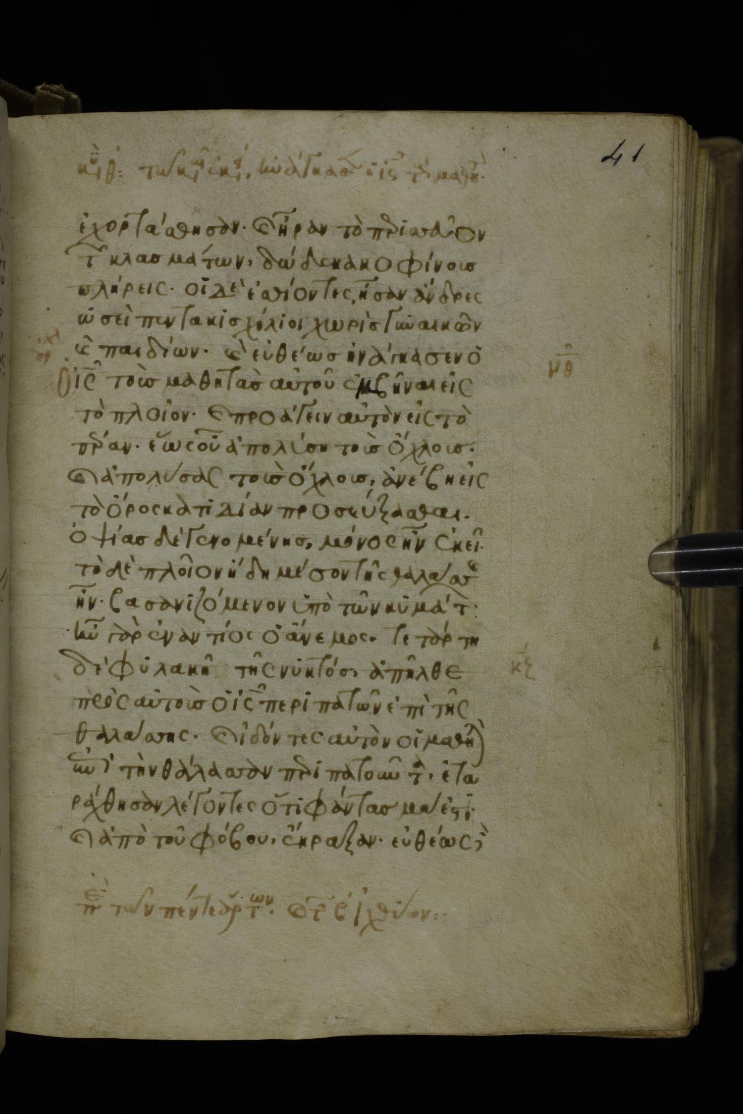 Fourteenth century minuscule of the Gospels on parchment; 302 leaves, 1 column, 19-21 lines per column. Images were taken at the National Library of Greece in Athens.
