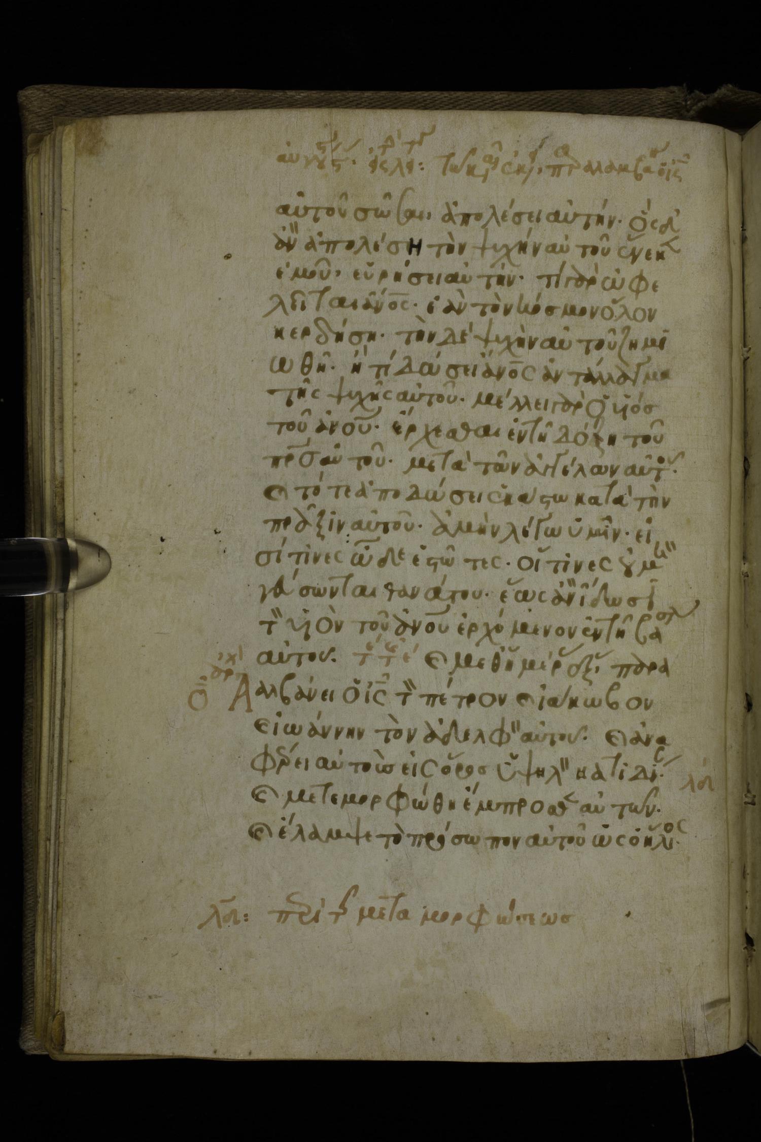 Fourteenth century minuscule of the Gospels on parchment; 302 leaves, 1 column, 19-21 lines per column. Images were taken at the National Library of Greece in Athens.