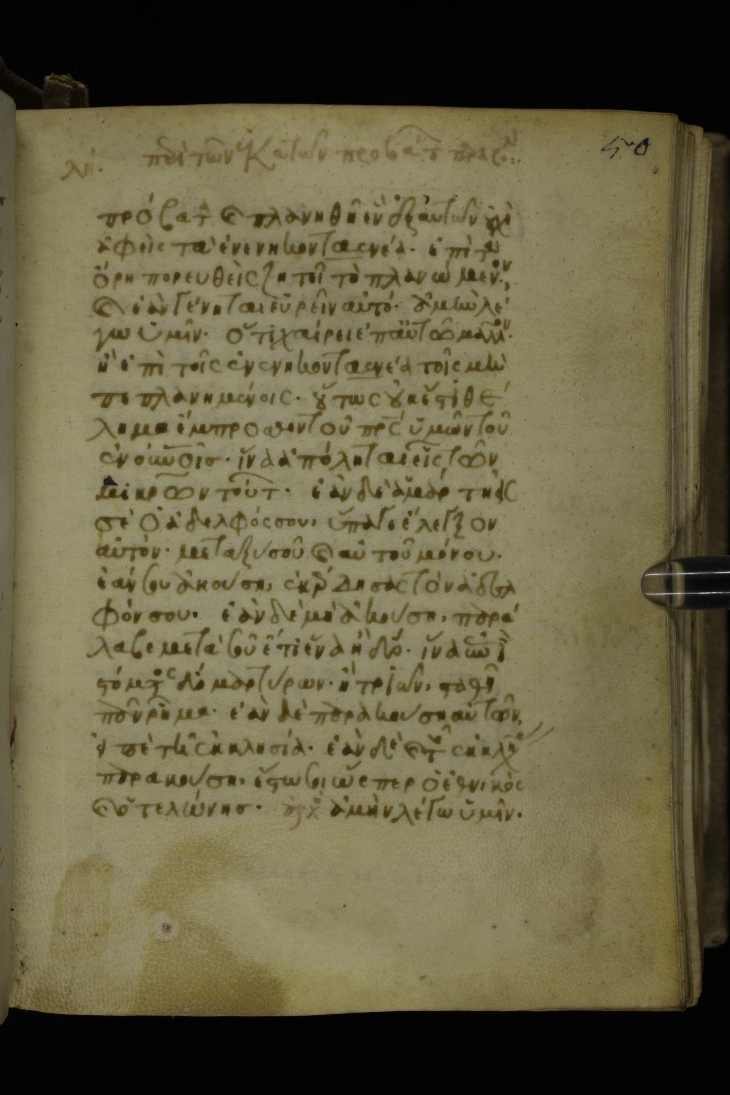 Fourteenth century minuscule of the Gospels on parchment; 302 leaves, 1 column, 19-21 lines per column. Images were taken at the National Library of Greece in Athens.