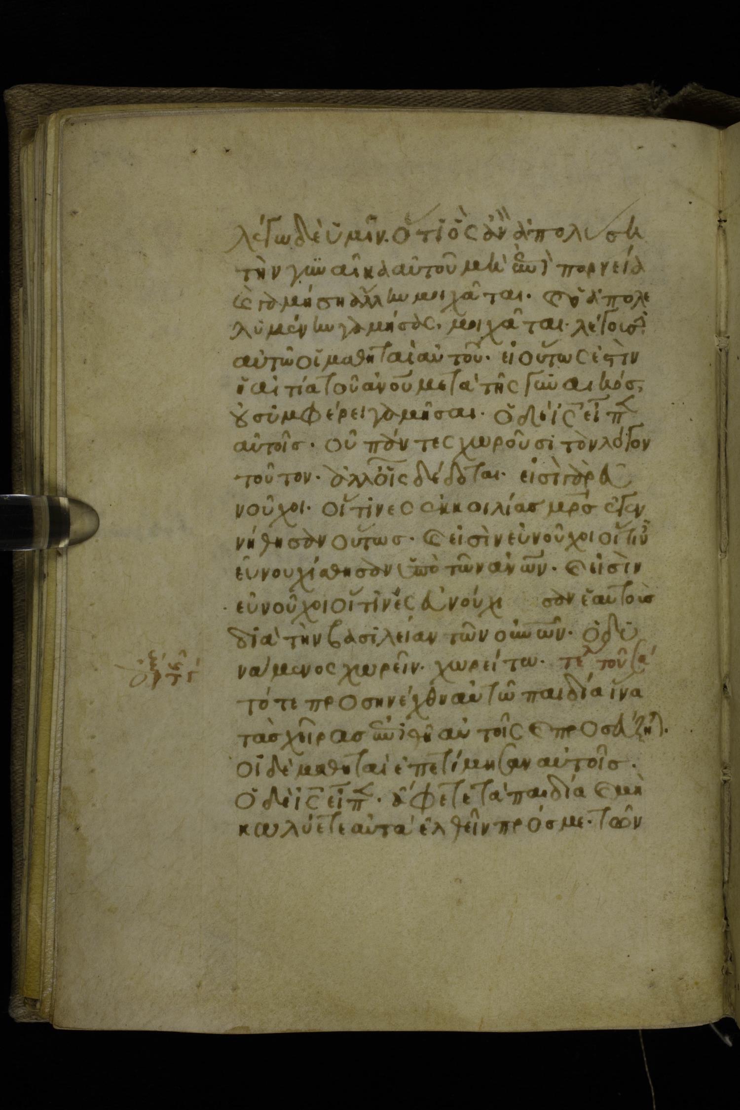 Fourteenth century minuscule of the Gospels on parchment; 302 leaves, 1 column, 19-21 lines per column. Images were taken at the National Library of Greece in Athens.