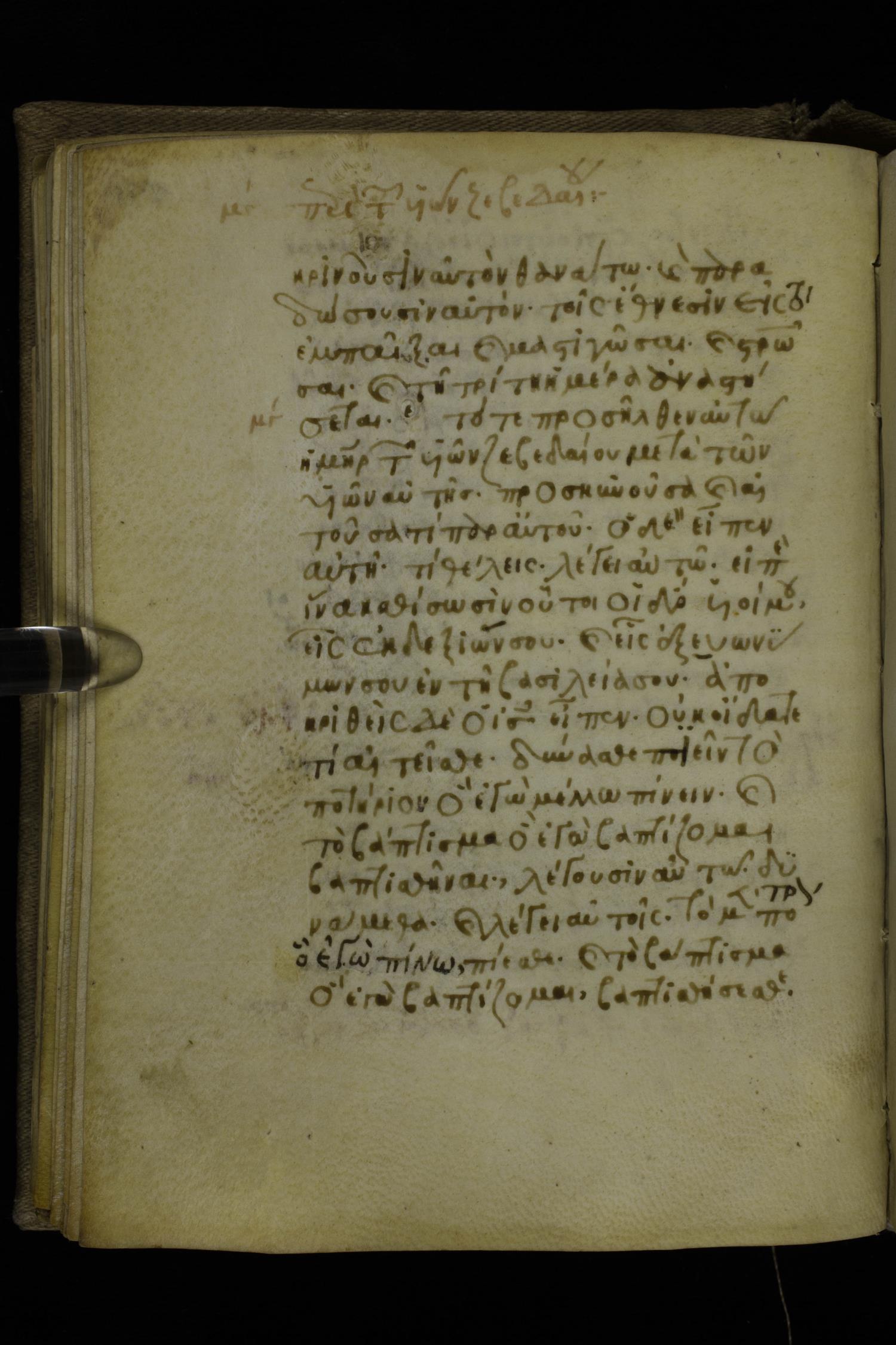 Fourteenth century minuscule of the Gospels on parchment; 302 leaves, 1 column, 19-21 lines per column. Images were taken at the National Library of Greece in Athens.