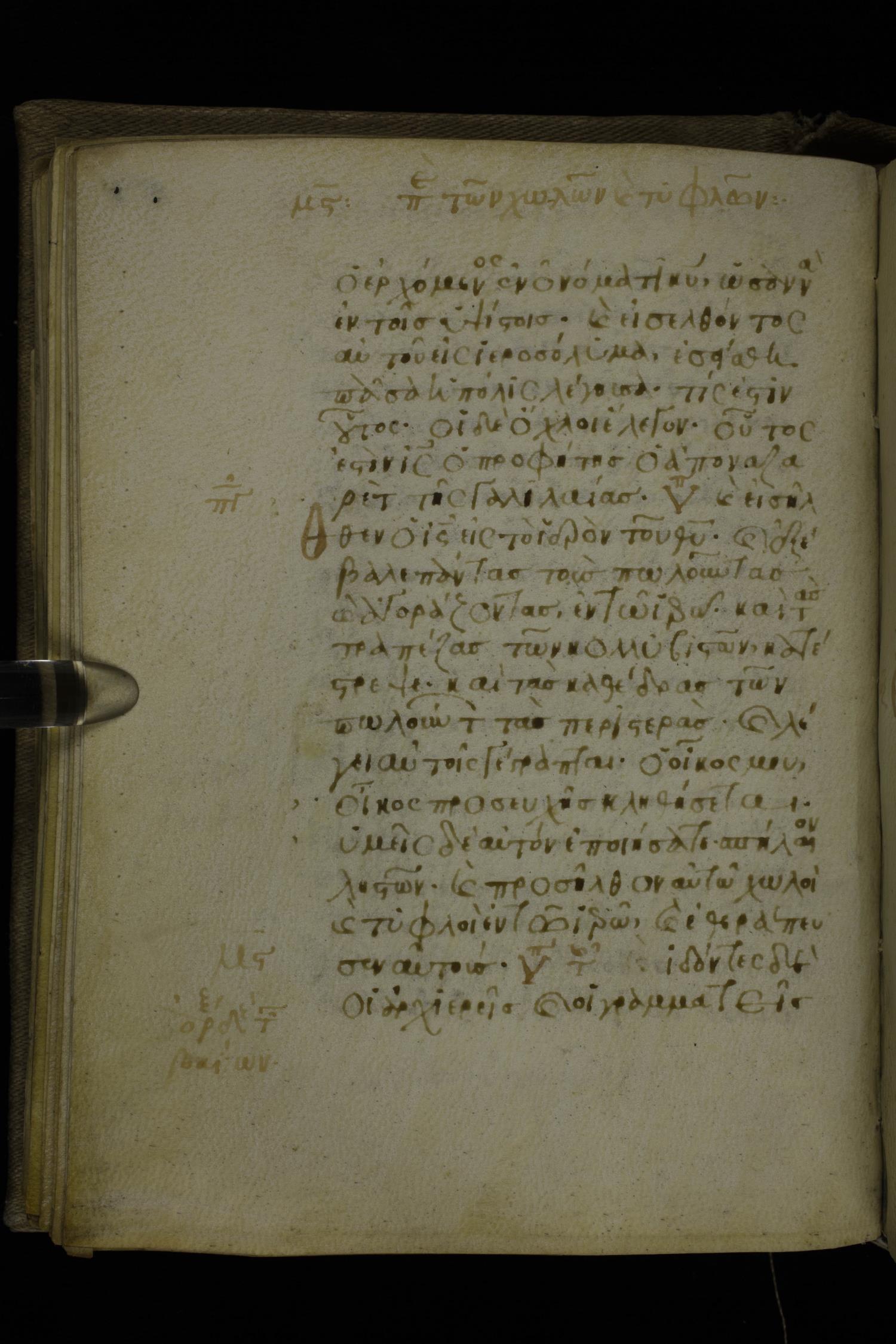 Fourteenth century minuscule of the Gospels on parchment; 302 leaves, 1 column, 19-21 lines per column. Images were taken at the National Library of Greece in Athens.