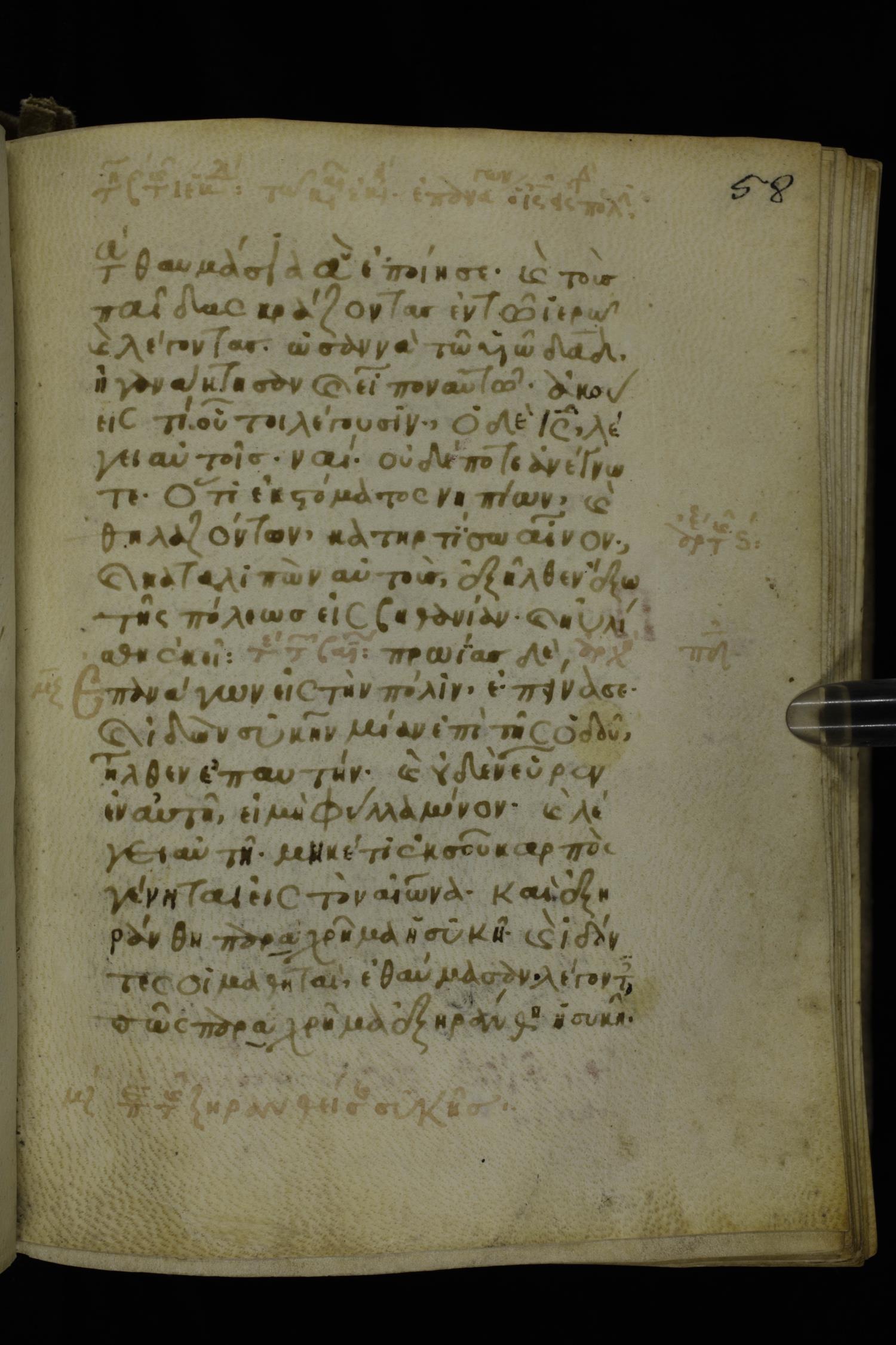 Fourteenth century minuscule of the Gospels on parchment; 302 leaves, 1 column, 19-21 lines per column. Images were taken at the National Library of Greece in Athens.