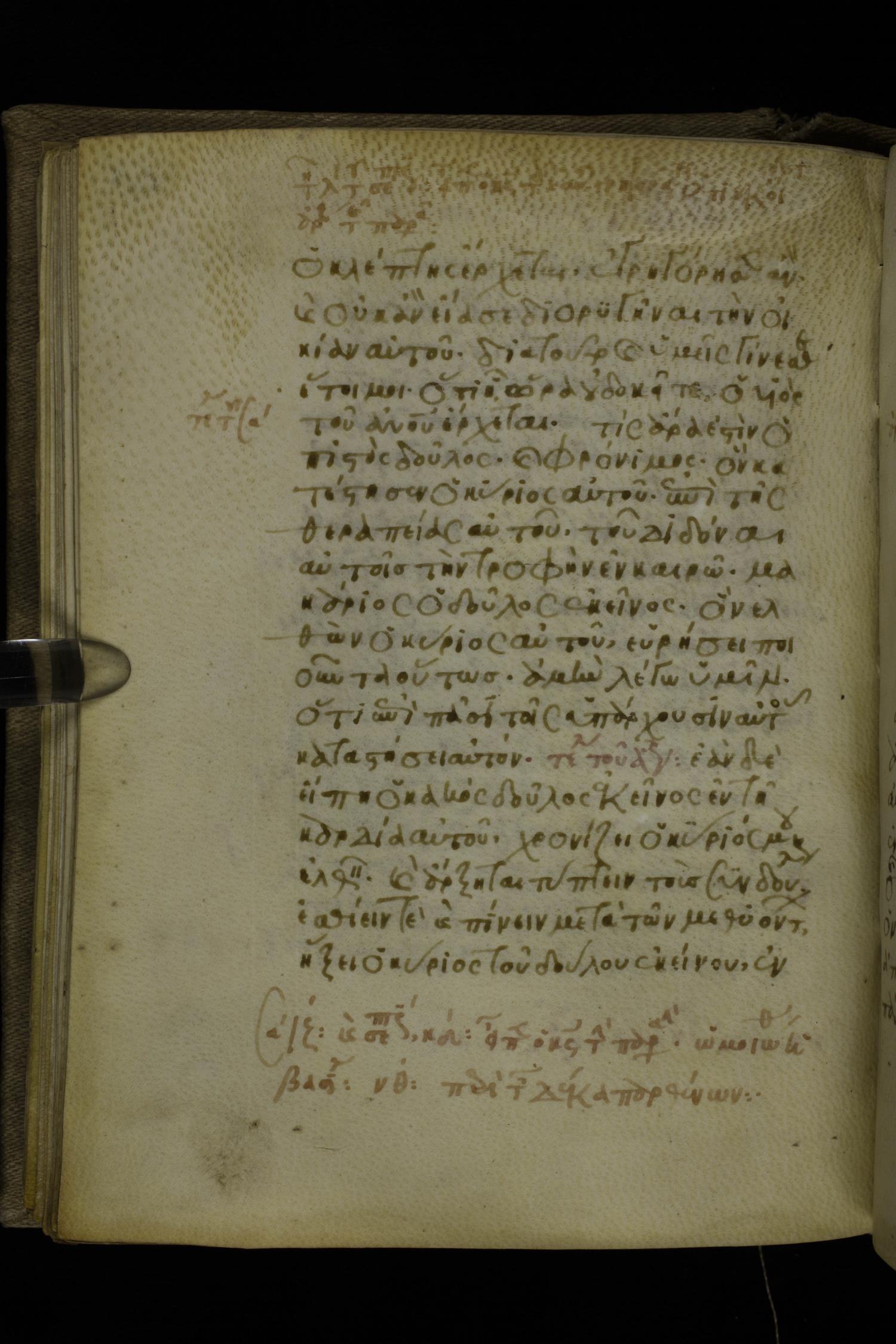 Fourteenth century minuscule of the Gospels on parchment; 302 leaves, 1 column, 19-21 lines per column. Images were taken at the National Library of Greece in Athens.
