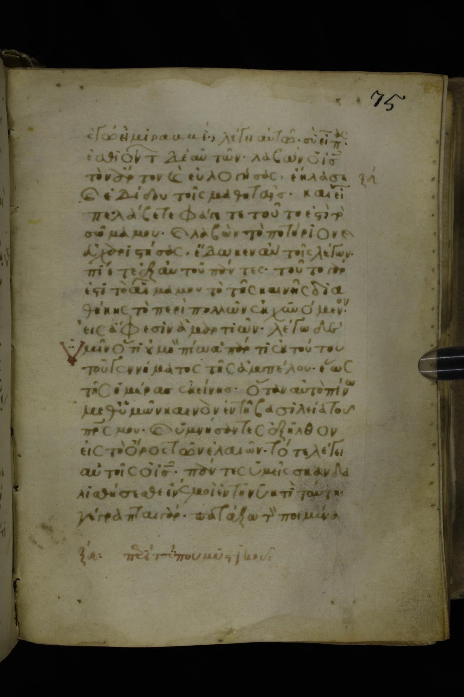 Fourteenth century minuscule of the Gospels on parchment; 302 leaves, 1 column, 19-21 lines per column. Images were taken at the National Library of Greece in Athens.