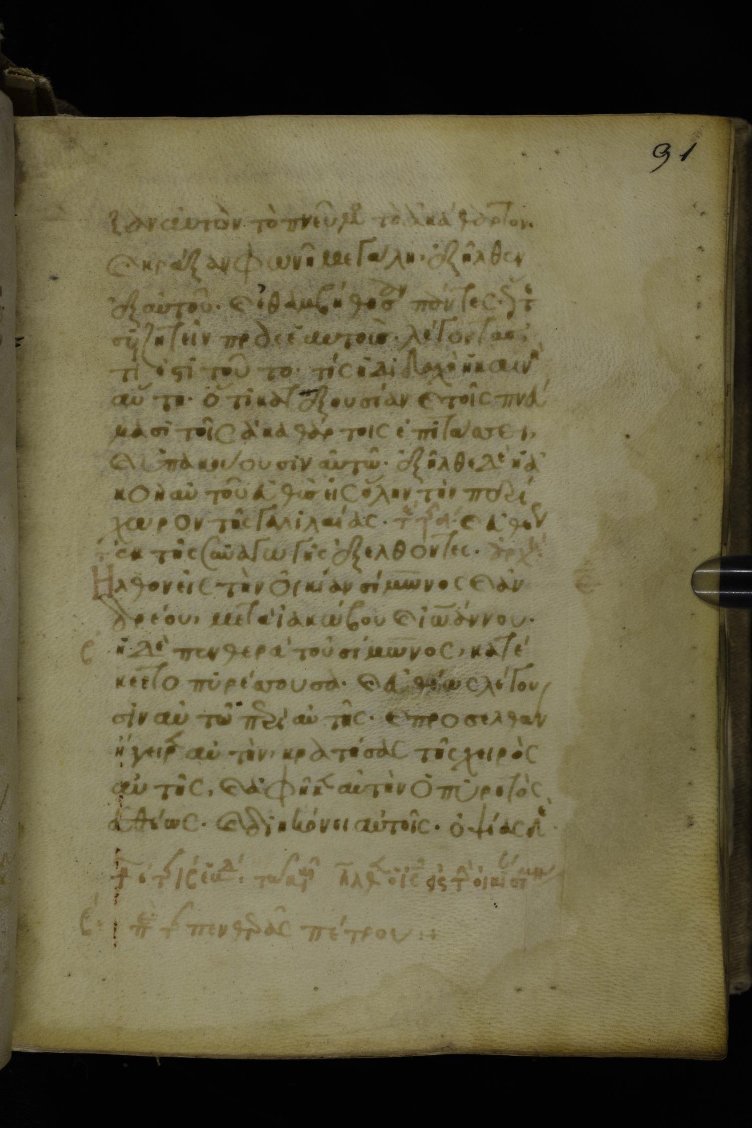 Fourteenth century minuscule of the Gospels on parchment; 302 leaves, 1 column, 19-21 lines per column. Images were taken at the National Library of Greece in Athens.