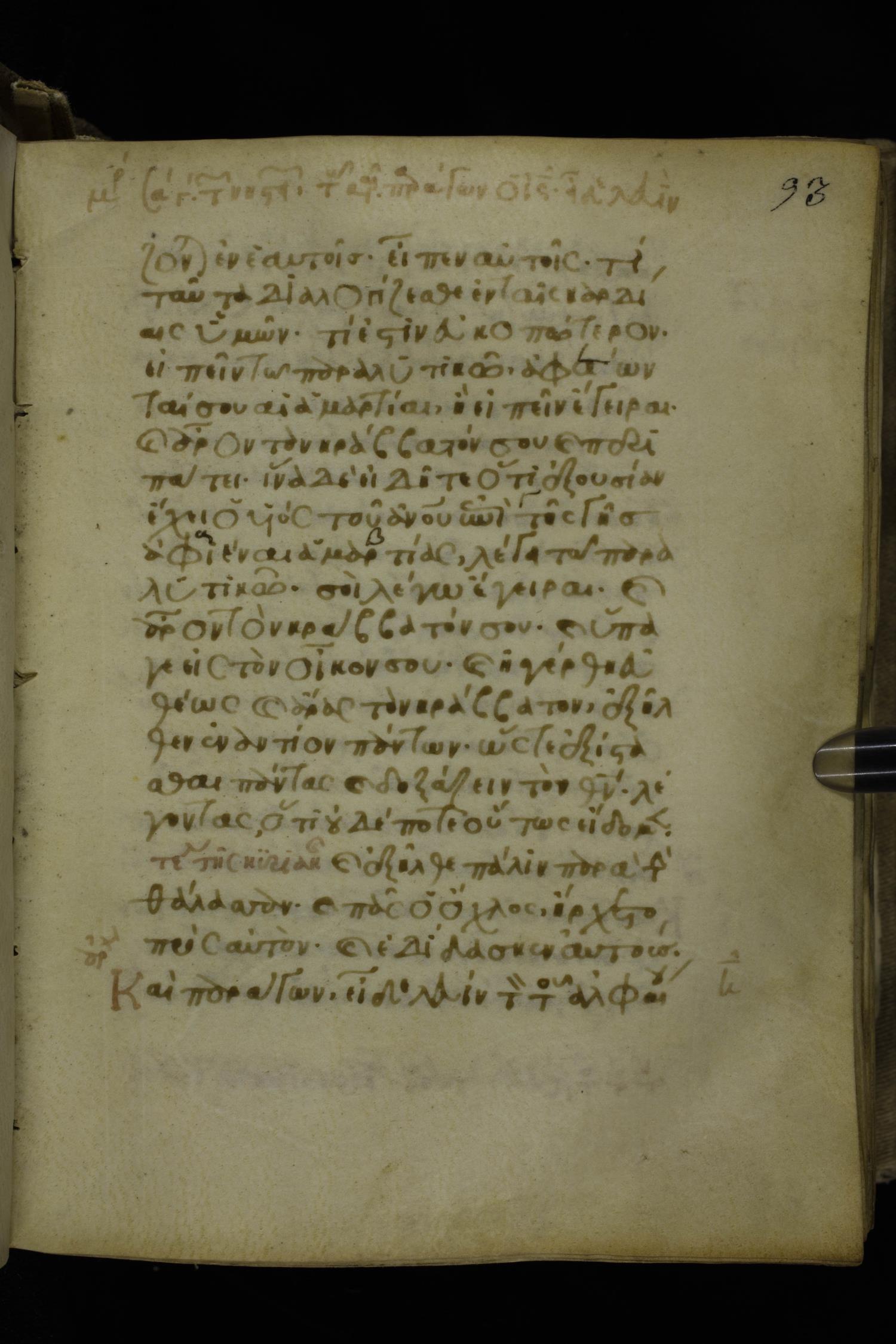 Fourteenth century minuscule of the Gospels on parchment; 302 leaves, 1 column, 19-21 lines per column. Images were taken at the National Library of Greece in Athens.