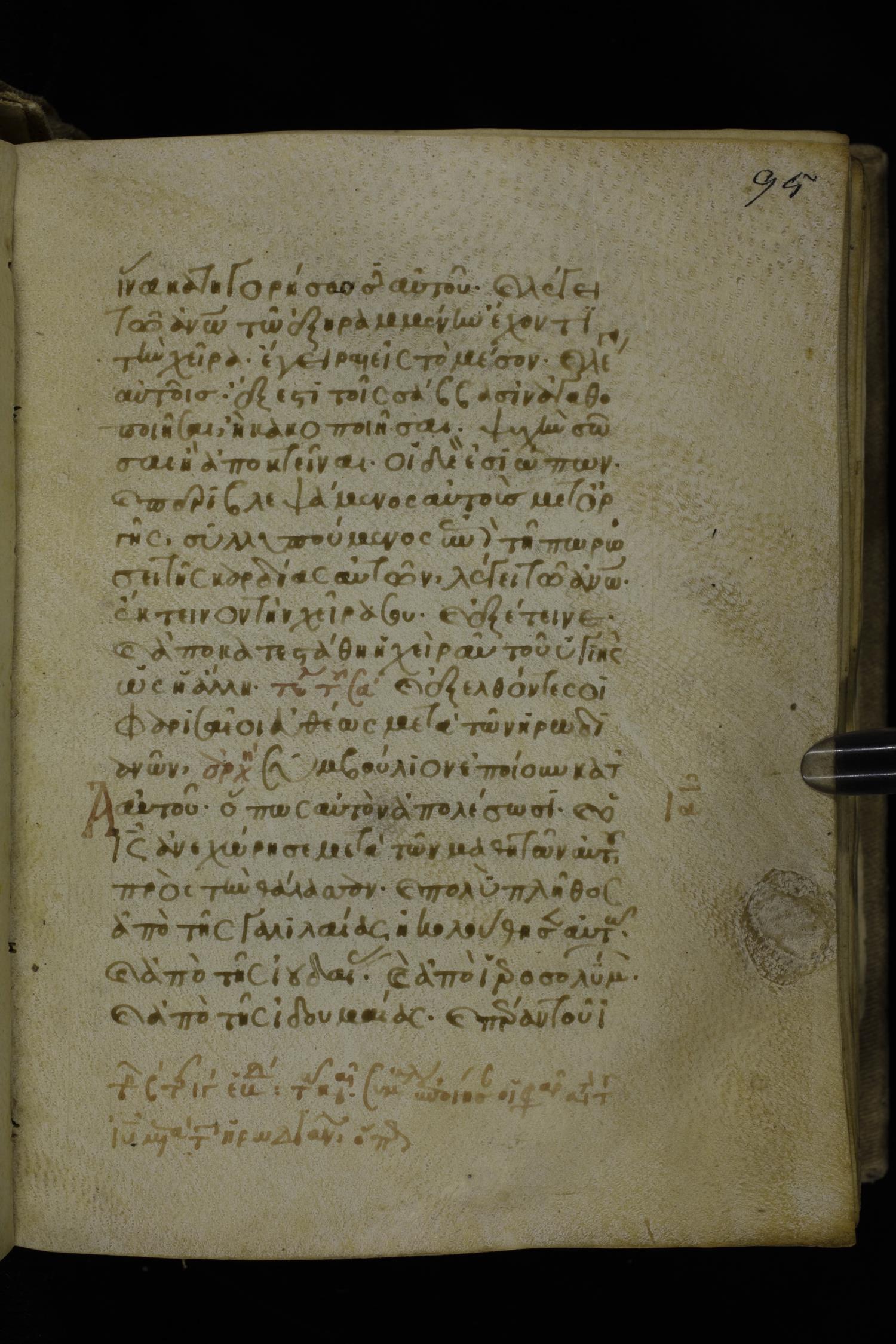 Fourteenth century minuscule of the Gospels on parchment; 302 leaves, 1 column, 19-21 lines per column. Images were taken at the National Library of Greece in Athens.