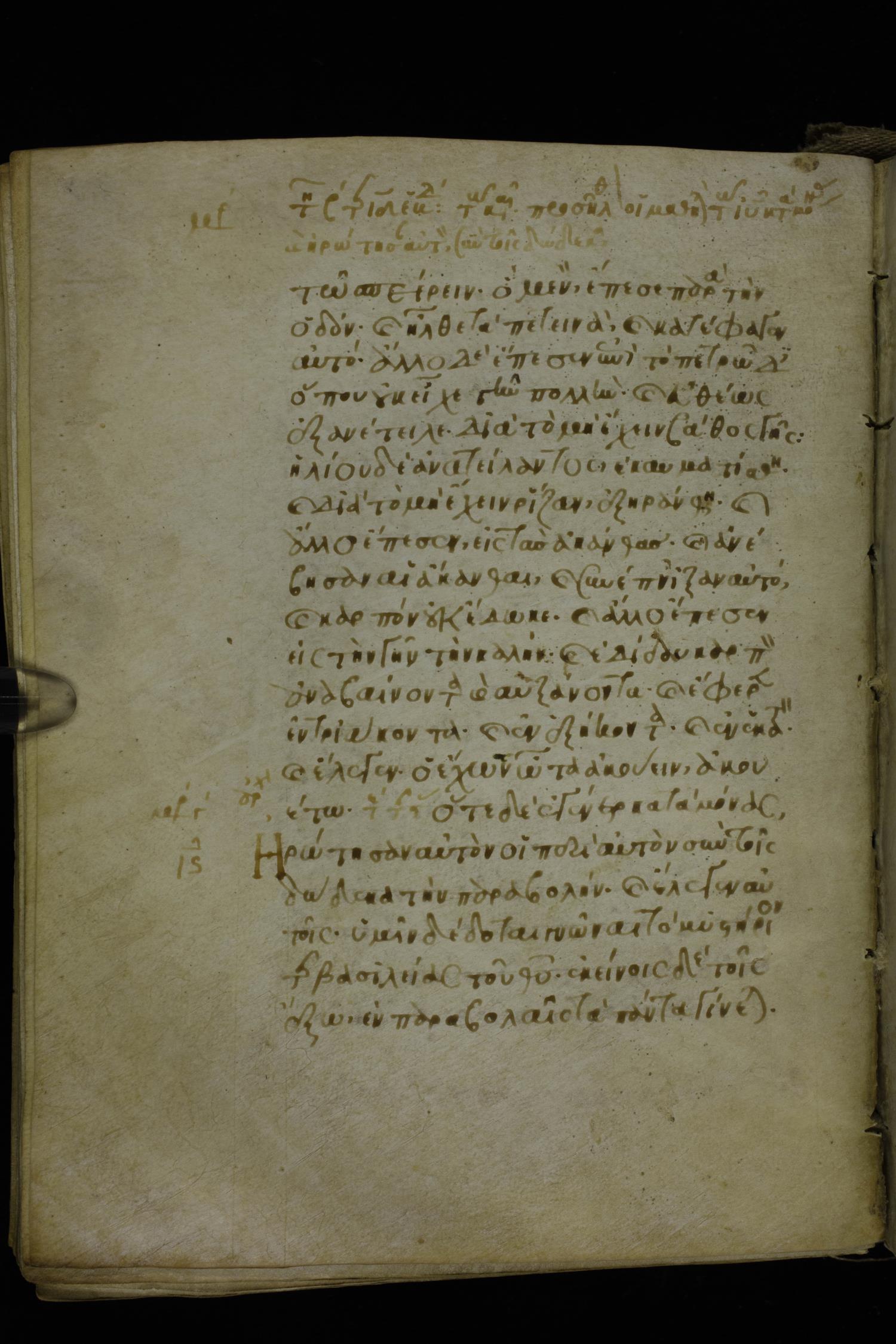 Fourteenth century minuscule of the Gospels on parchment; 302 leaves, 1 column, 19-21 lines per column. Images were taken at the National Library of Greece in Athens.