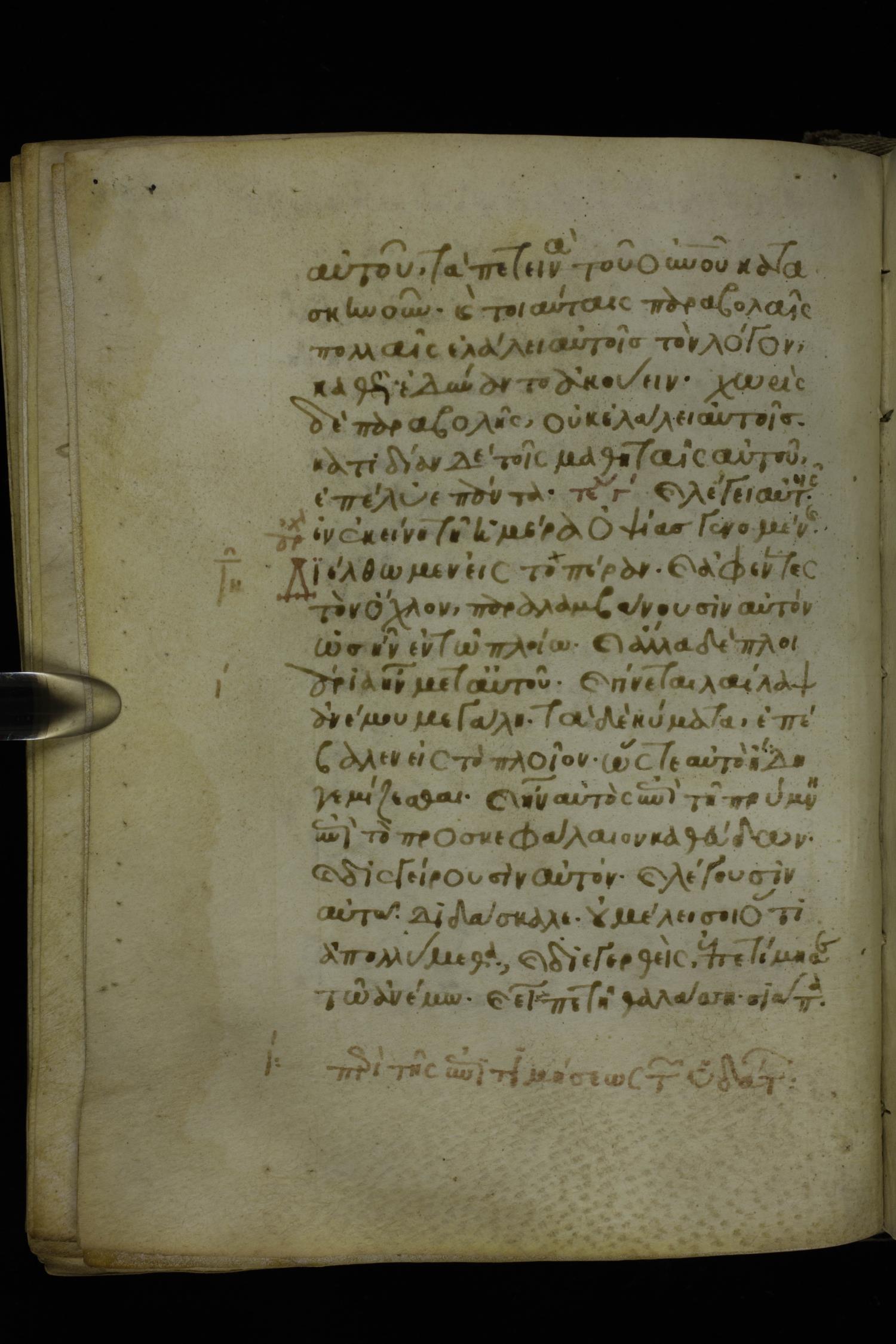 Fourteenth century minuscule of the Gospels on parchment; 302 leaves, 1 column, 19-21 lines per column. Images were taken at the National Library of Greece in Athens.