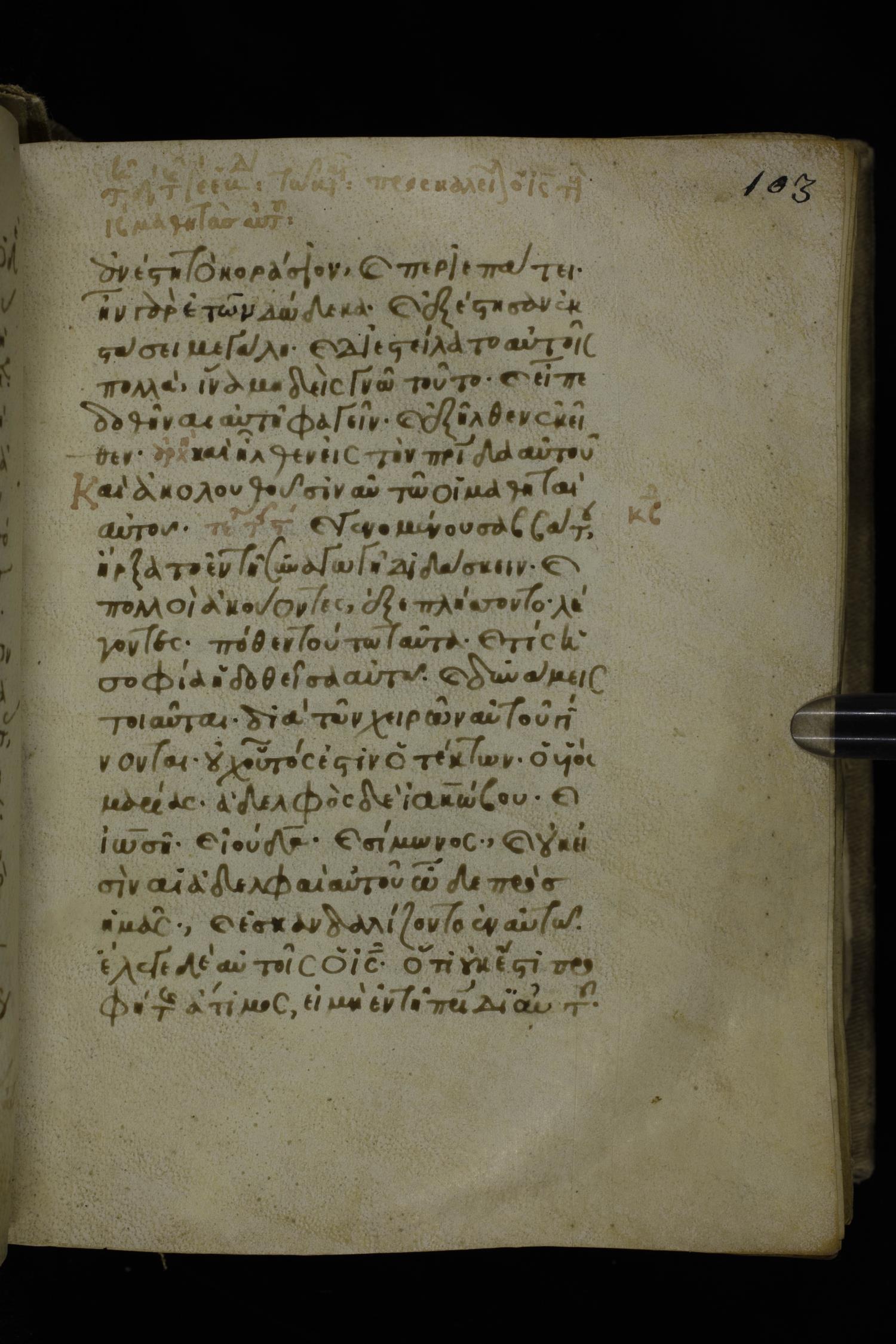 Fourteenth century minuscule of the Gospels on parchment; 302 leaves, 1 column, 19-21 lines per column. Images were taken at the National Library of Greece in Athens.