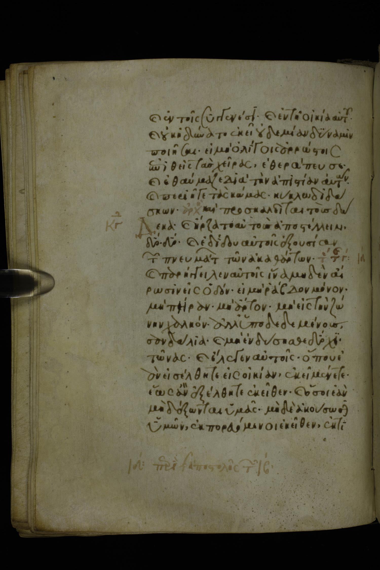 Fourteenth century minuscule of the Gospels on parchment; 302 leaves, 1 column, 19-21 lines per column. Images were taken at the National Library of Greece in Athens.