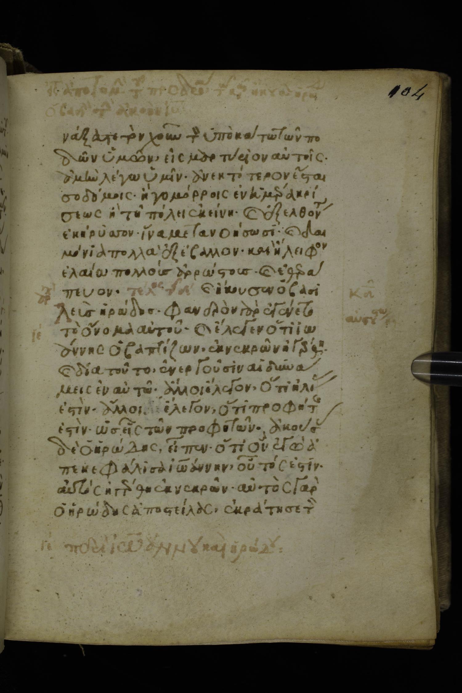 Fourteenth century minuscule of the Gospels on parchment; 302 leaves, 1 column, 19-21 lines per column. Images were taken at the National Library of Greece in Athens.