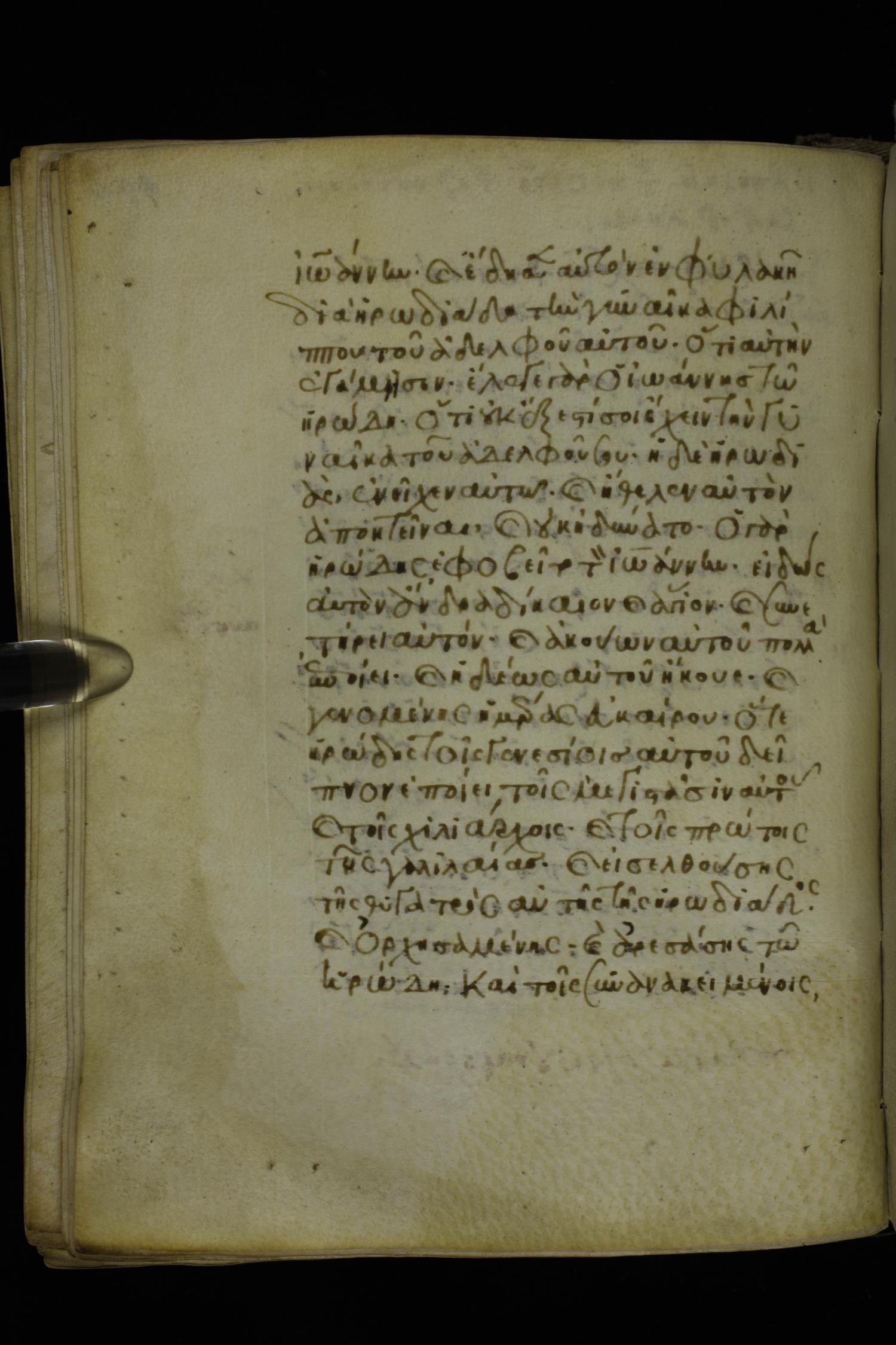 Fourteenth century minuscule of the Gospels on parchment; 302 leaves, 1 column, 19-21 lines per column. Images were taken at the National Library of Greece in Athens.