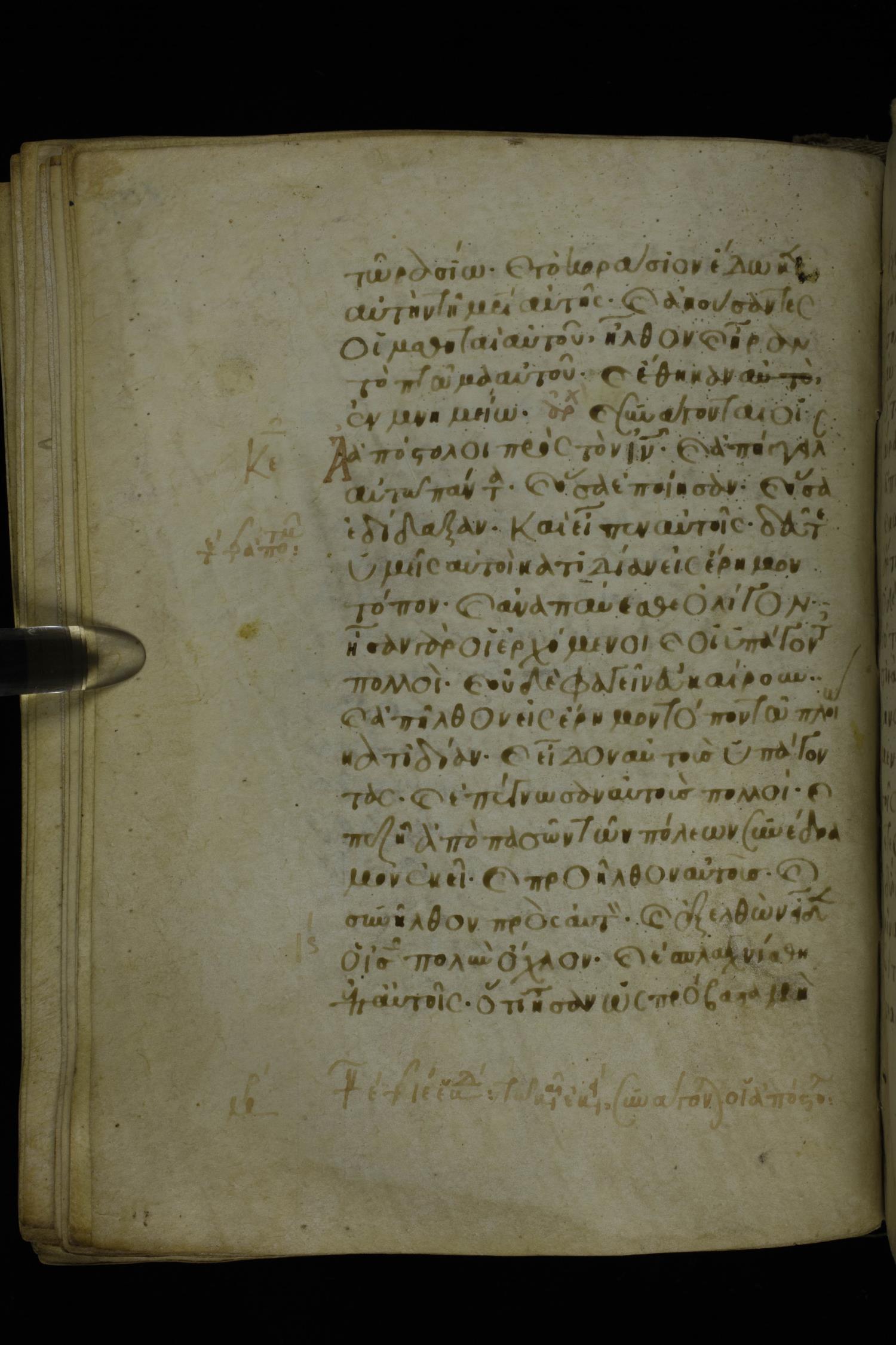 Fourteenth century minuscule of the Gospels on parchment; 302 leaves, 1 column, 19-21 lines per column. Images were taken at the National Library of Greece in Athens.