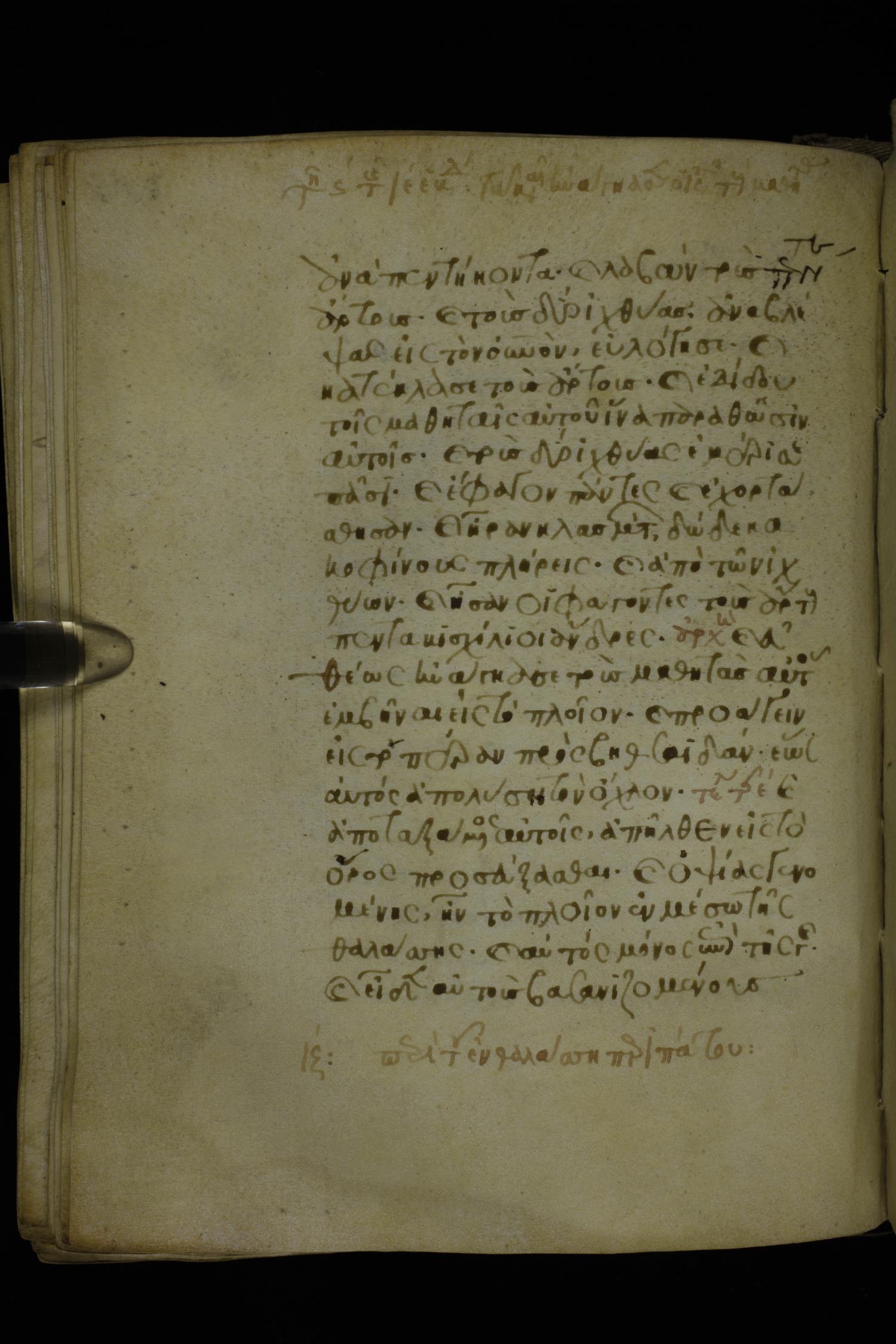 Fourteenth century minuscule of the Gospels on parchment; 302 leaves, 1 column, 19-21 lines per column. Images were taken at the National Library of Greece in Athens.