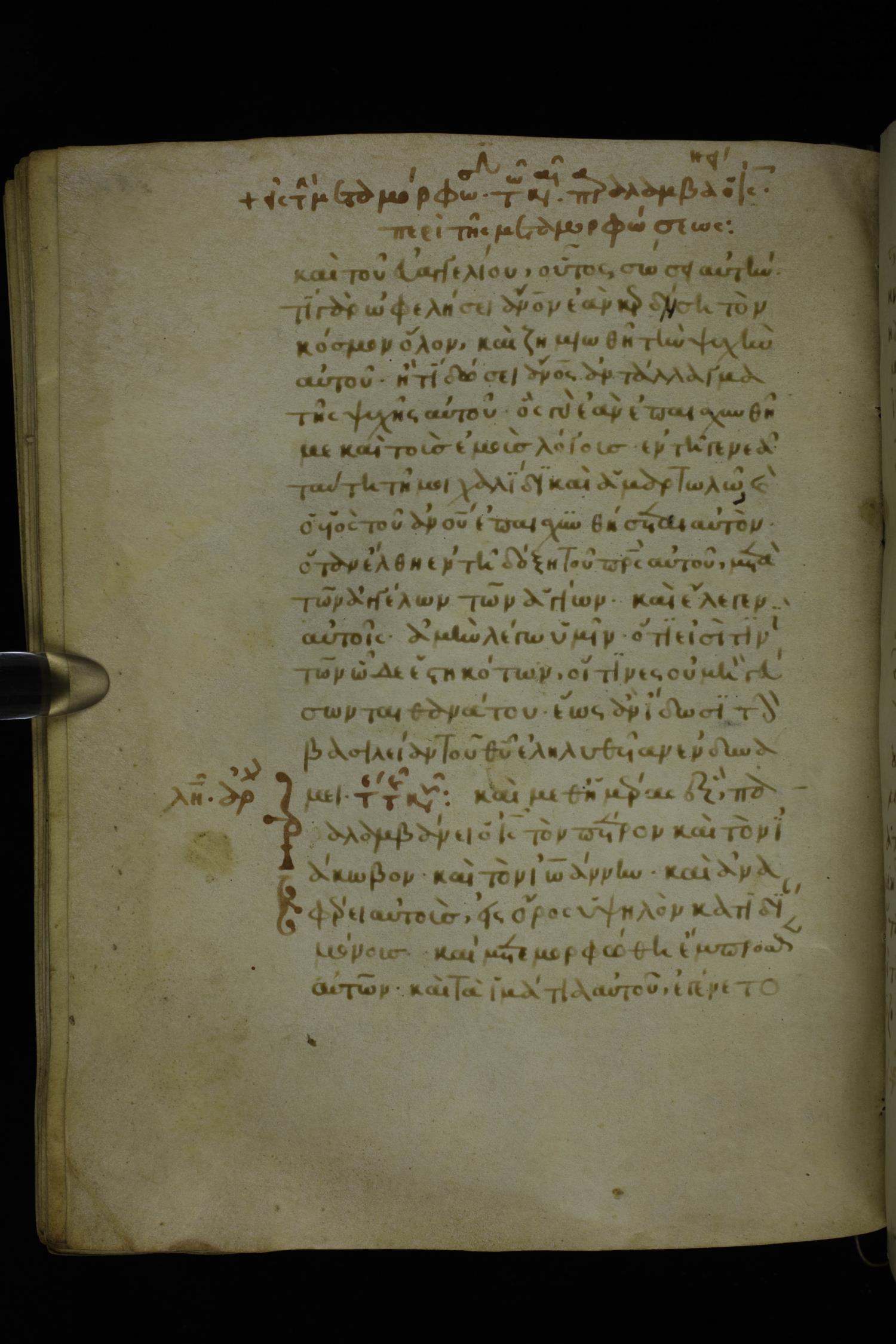 Fourteenth century minuscule of the Gospels on parchment; 302 leaves, 1 column, 19-21 lines per column. Images were taken at the National Library of Greece in Athens.
