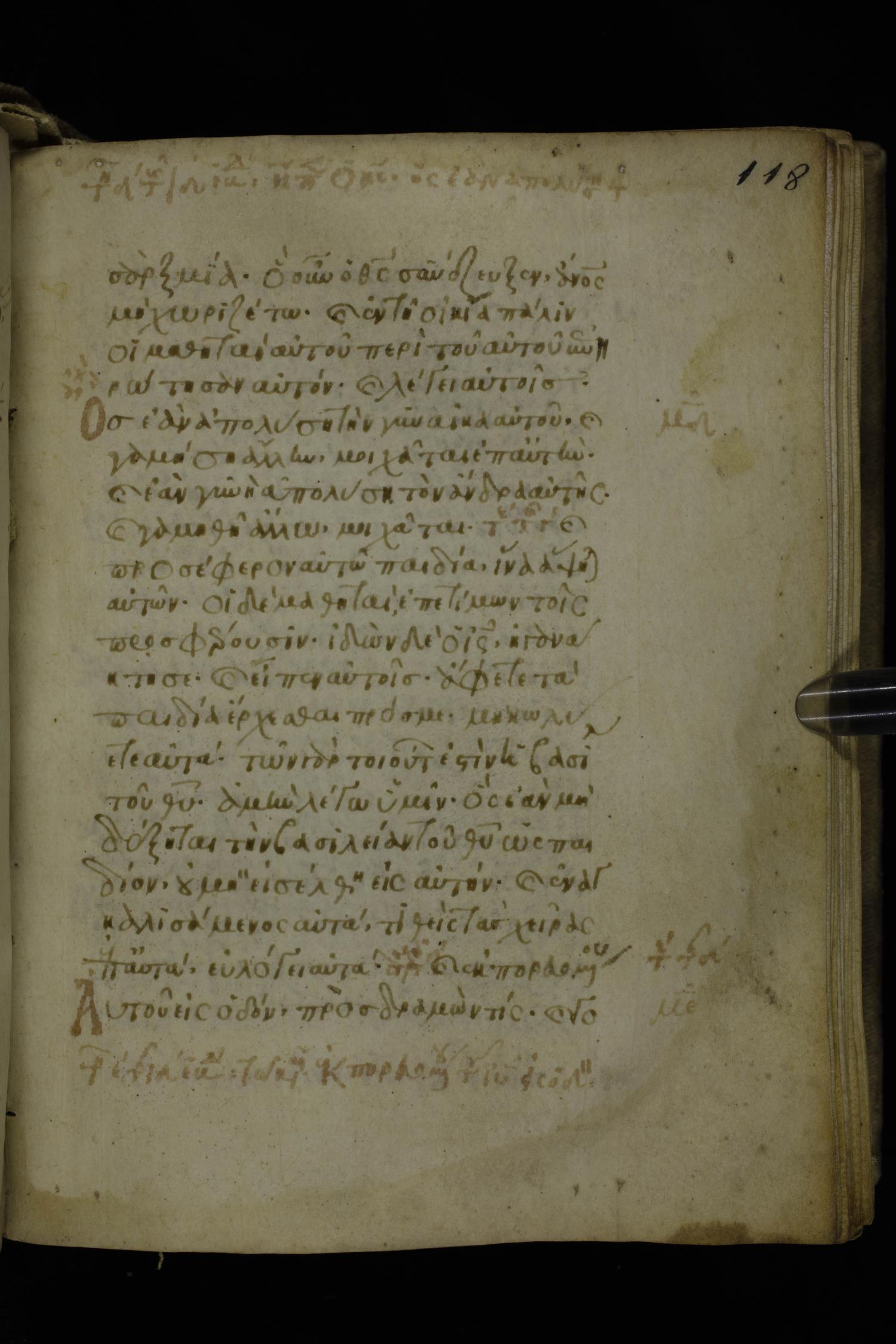 Fourteenth century minuscule of the Gospels on parchment; 302 leaves, 1 column, 19-21 lines per column. Images were taken at the National Library of Greece in Athens.