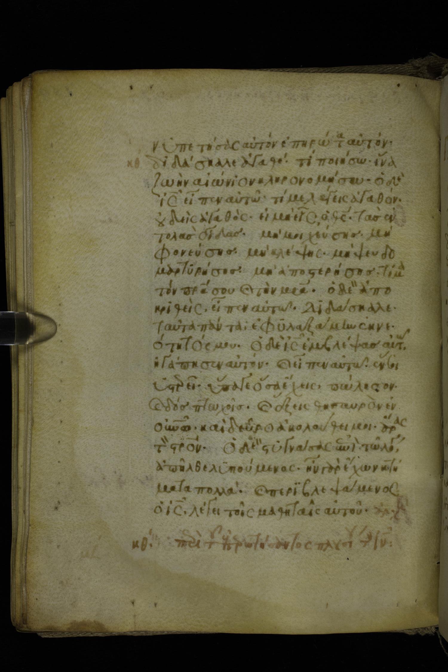 Fourteenth century minuscule of the Gospels on parchment; 302 leaves, 1 column, 19-21 lines per column. Images were taken at the National Library of Greece in Athens.