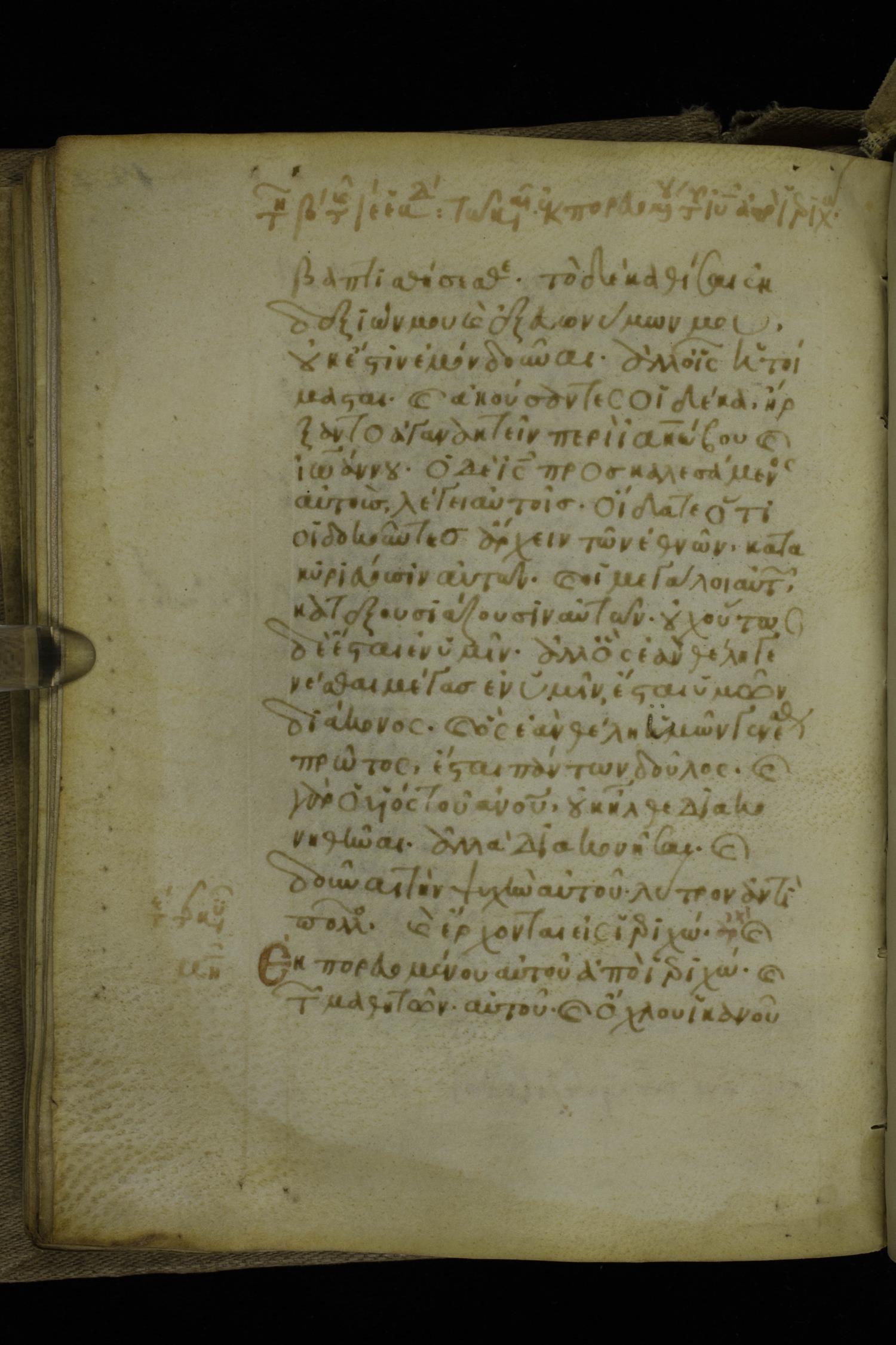 Fourteenth century minuscule of the Gospels on parchment; 302 leaves, 1 column, 19-21 lines per column. Images were taken at the National Library of Greece in Athens.