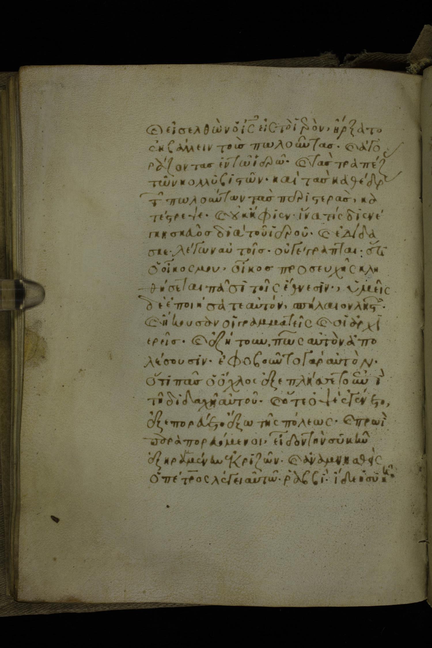 Fourteenth century minuscule of the Gospels on parchment; 302 leaves, 1 column, 19-21 lines per column. Images were taken at the National Library of Greece in Athens.