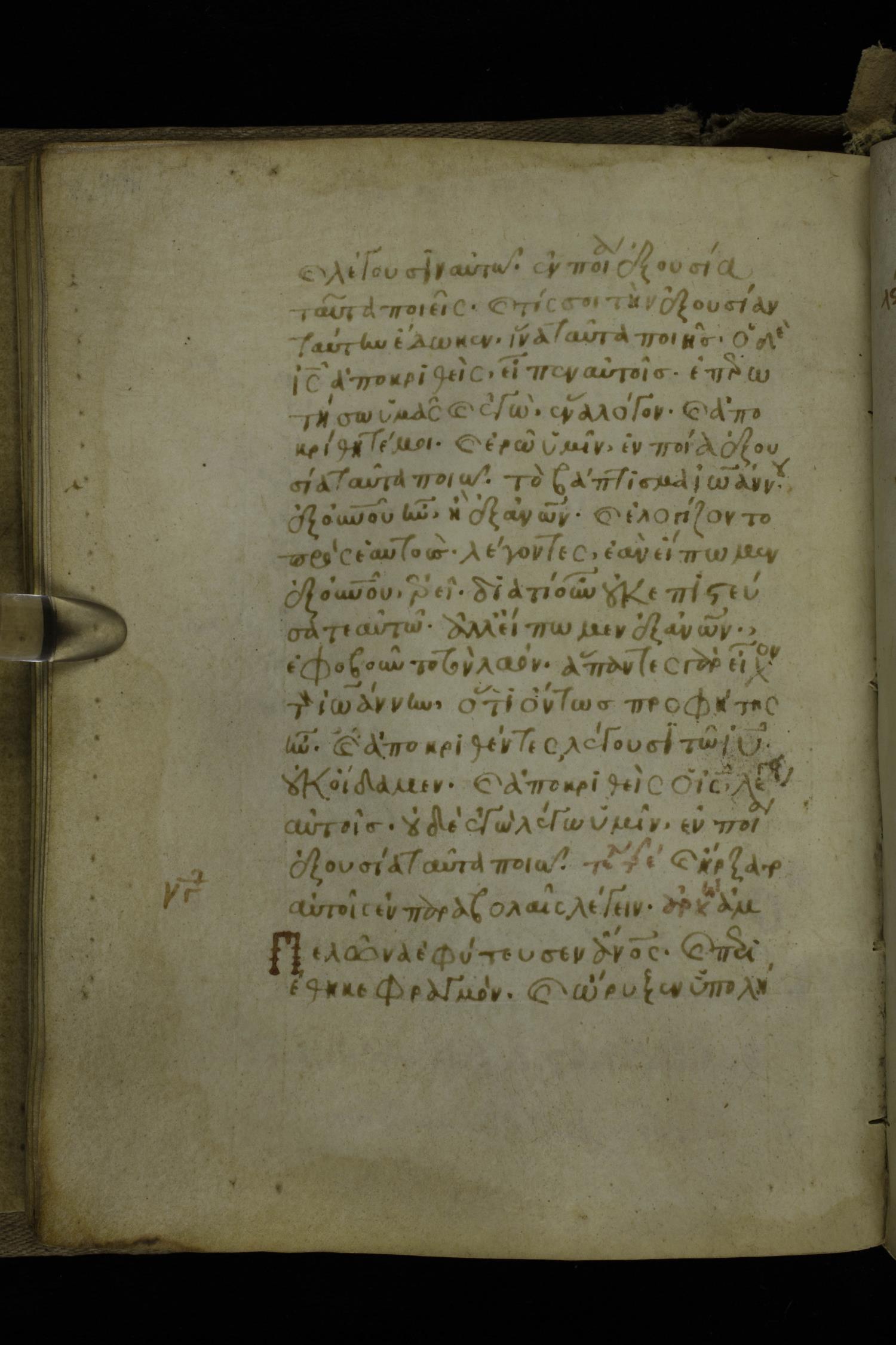 Fourteenth century minuscule of the Gospels on parchment; 302 leaves, 1 column, 19-21 lines per column. Images were taken at the National Library of Greece in Athens.