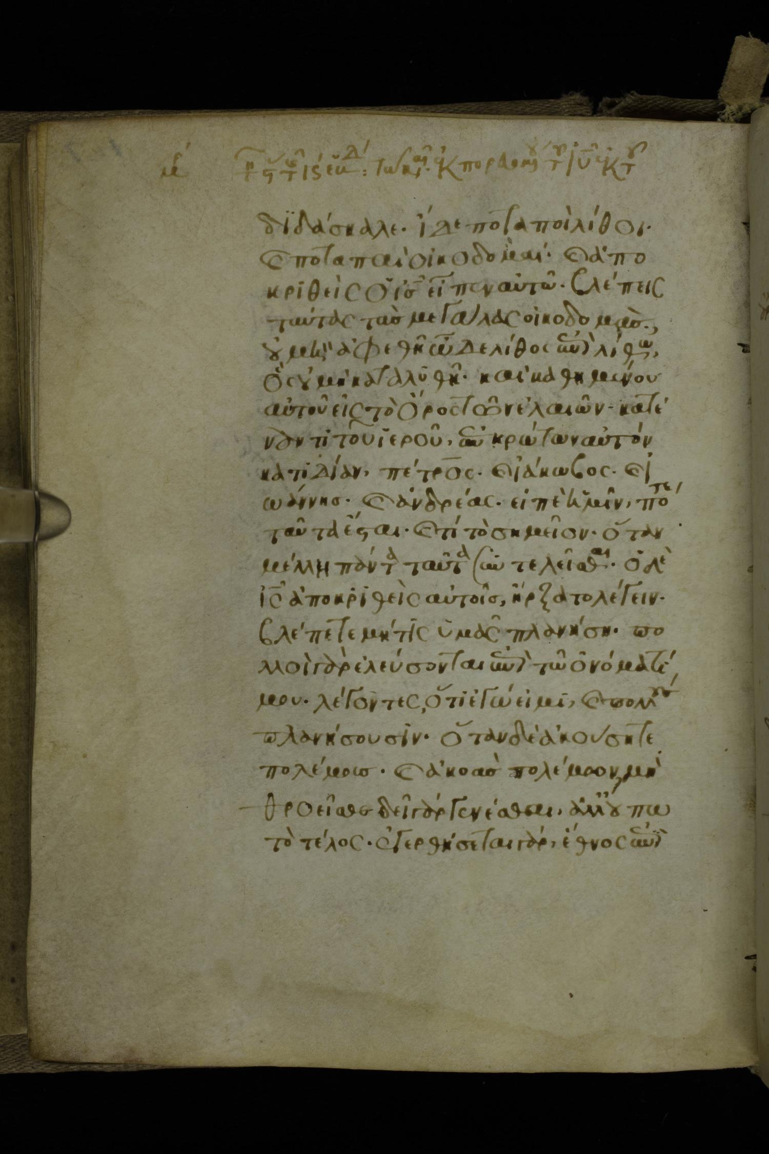 Fourteenth century minuscule of the Gospels on parchment; 302 leaves, 1 column, 19-21 lines per column. Images were taken at the National Library of Greece in Athens.
